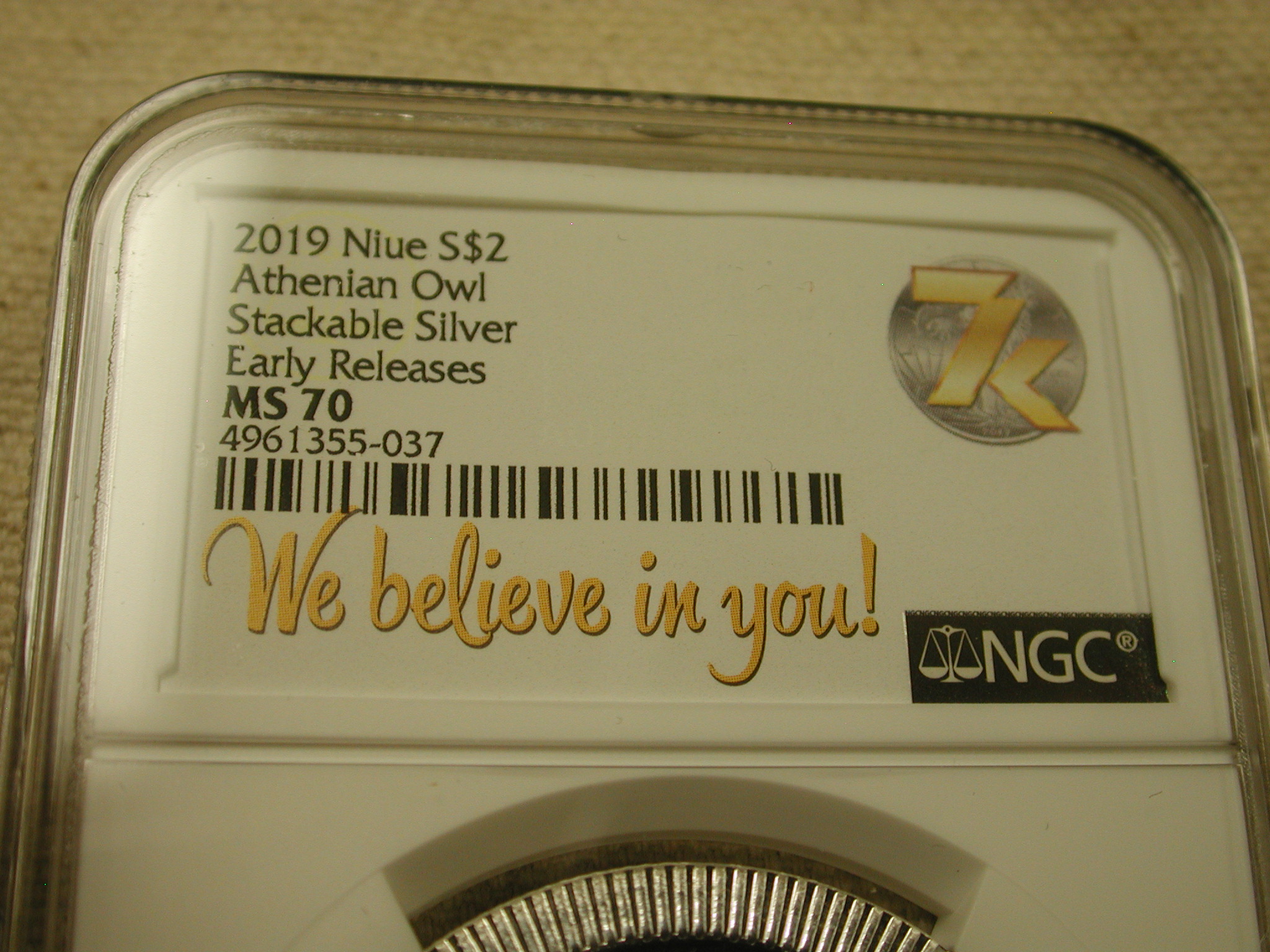 2019 Niue S$2 Athenian Owl Stackable Early Release MS70 NGC