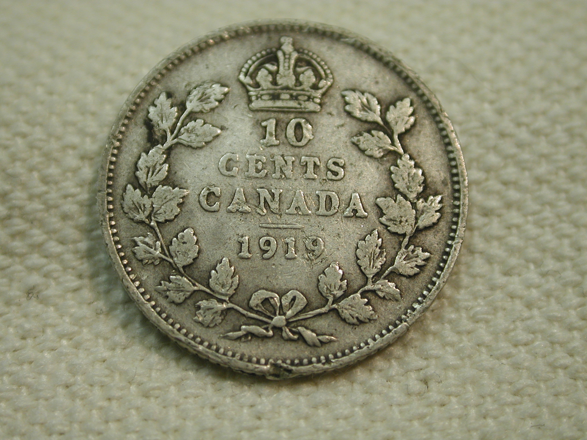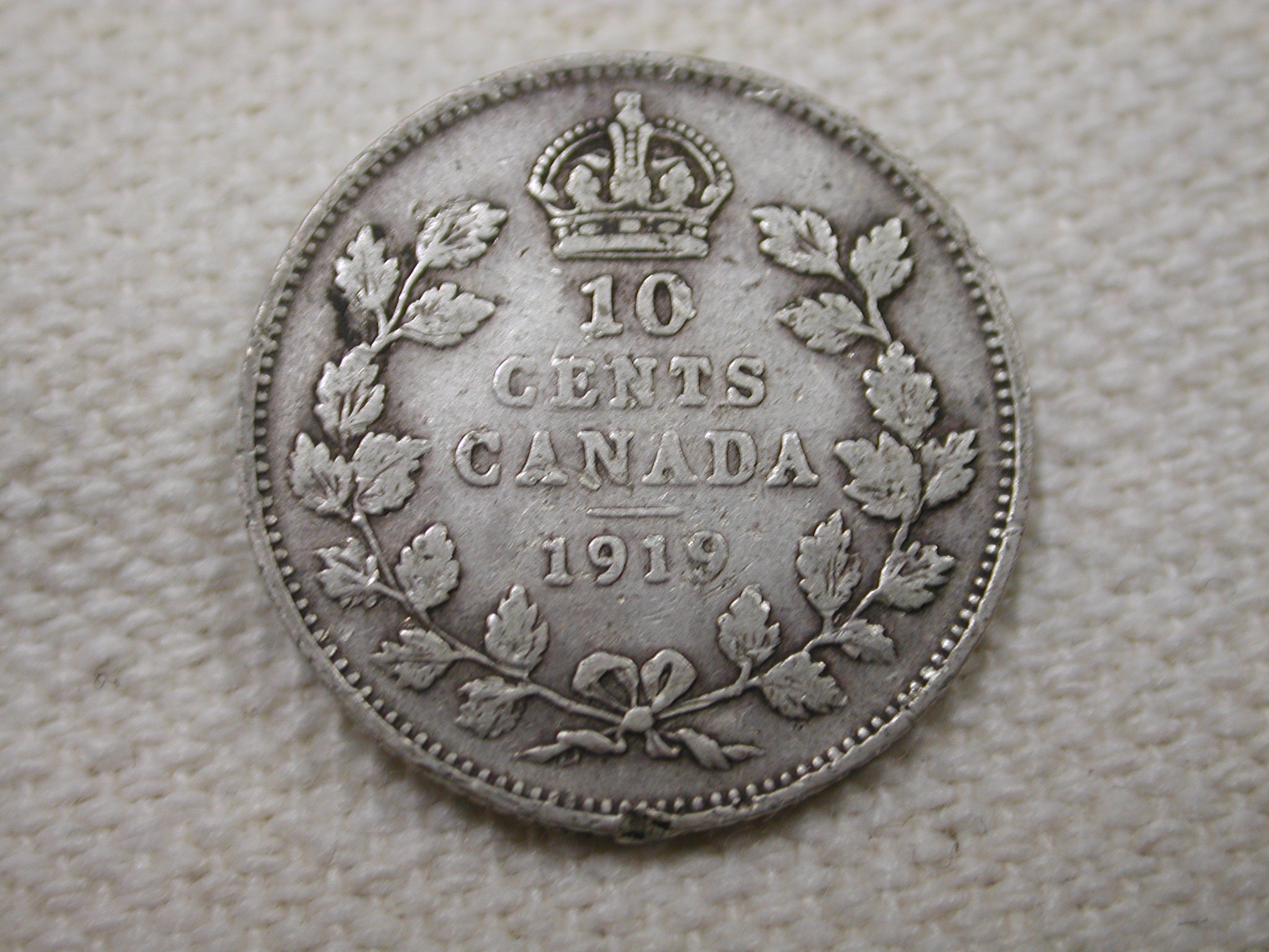 1919 Canada 10 Cents Extra Fine ASW 0.096