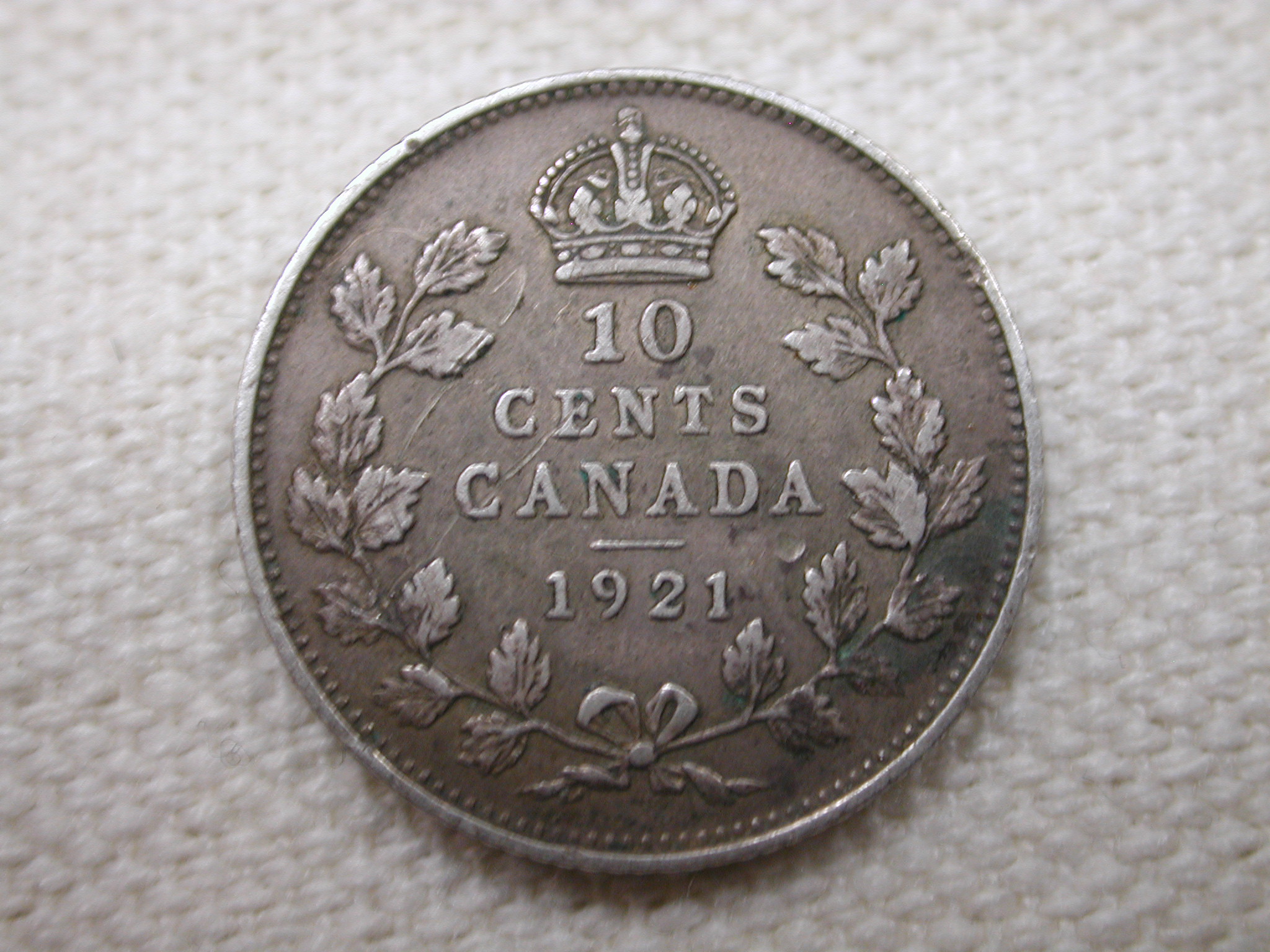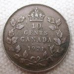 1921 Canada 10 Cent Extra Fine + ASW 0.060