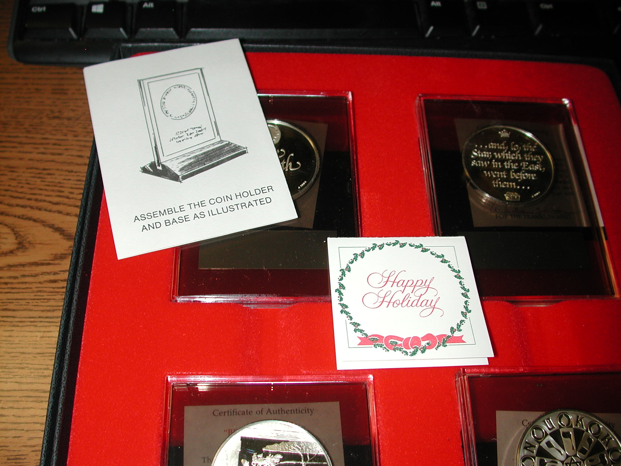 1984 Franklin Mint Holiday .925 Silver Medal set of 4 Angels-Santa-Peace-Festival of Lights