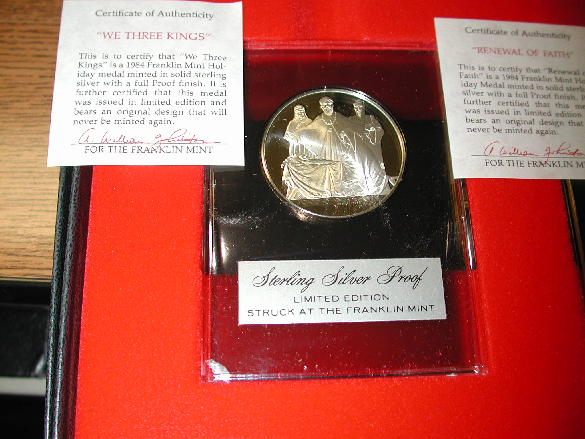1984 Franklin Mint Holiday .925 Silver Medal set of 4 Peace – Three Kings-Tree-Faith