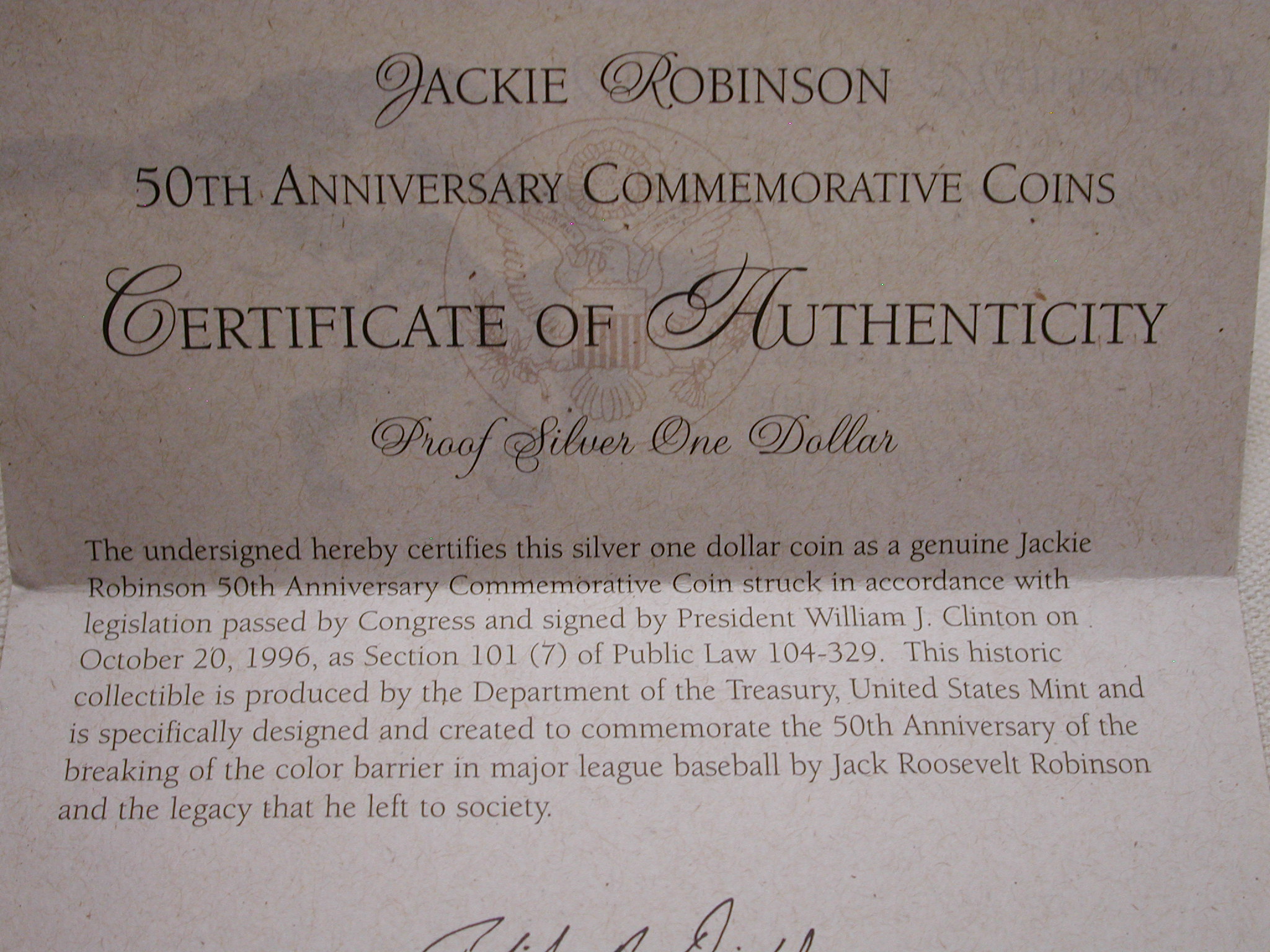 1997 U.S Mint Jackie Robinson Comm. Coin Silver Proof