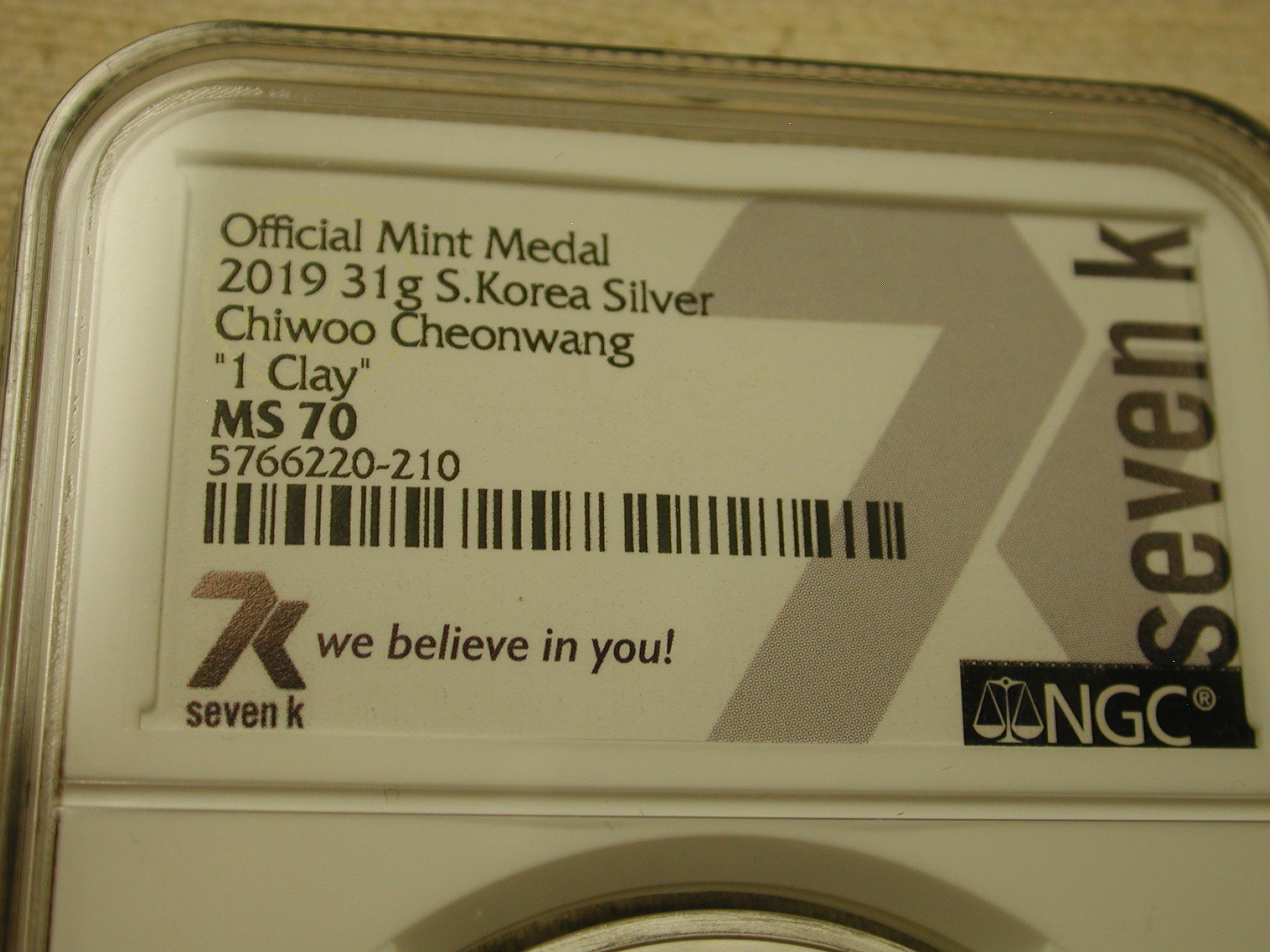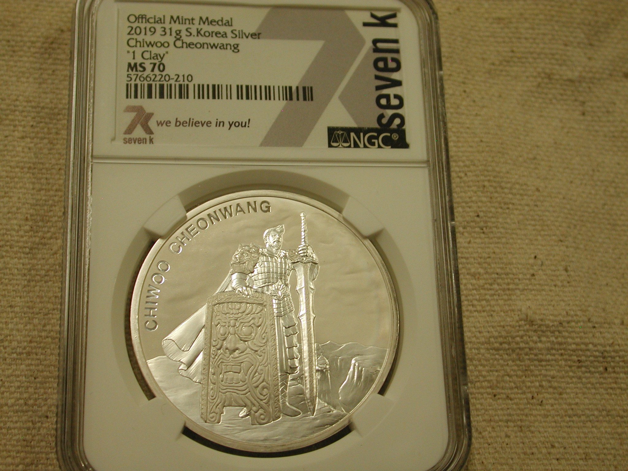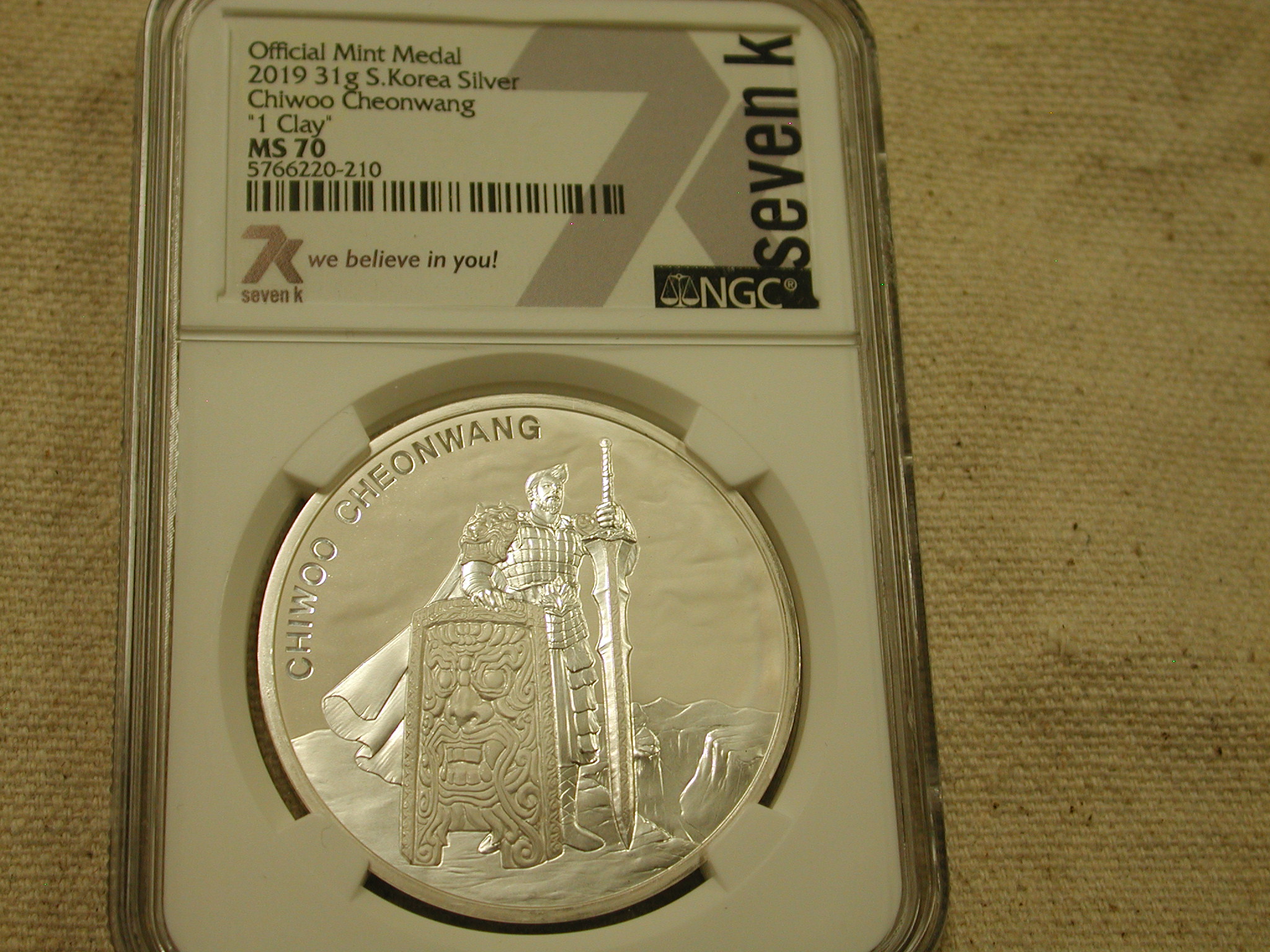 2019-1 Oz .999 Silver Official Mint Medal South Korea MS70 NGC Seven – 1 Clay – Chiwoo Cheonwang