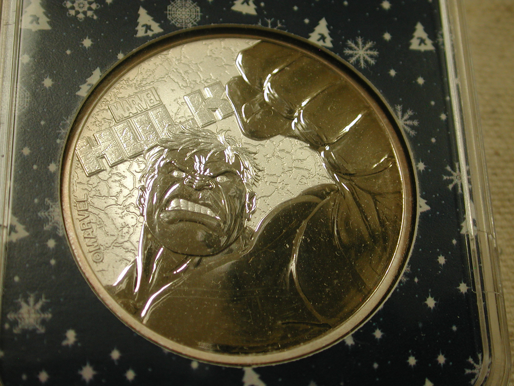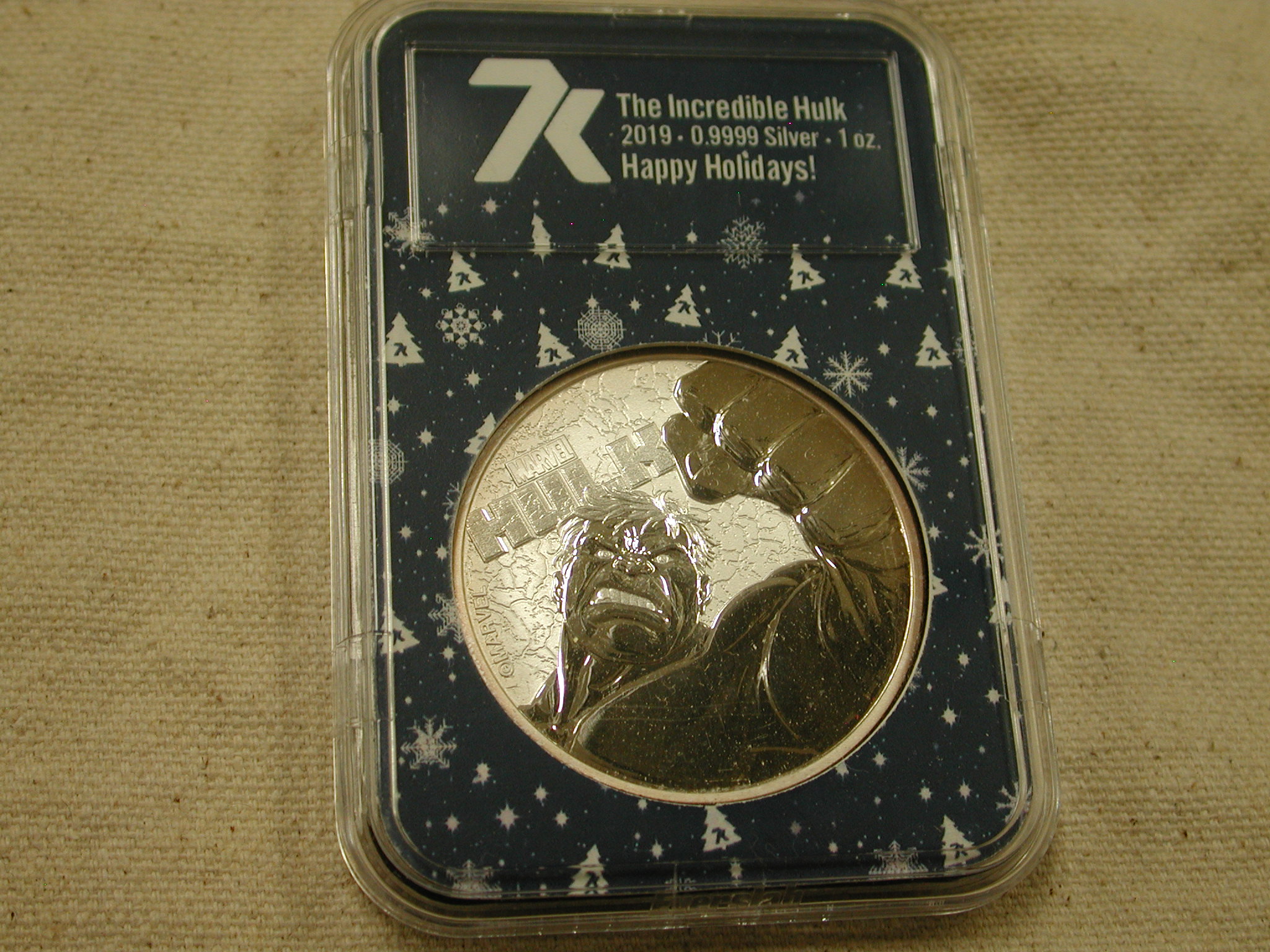 2019- Tuvalu 1 Troy Oz Silver The Incredible Hulk – 7K Happy Holidays! Holder