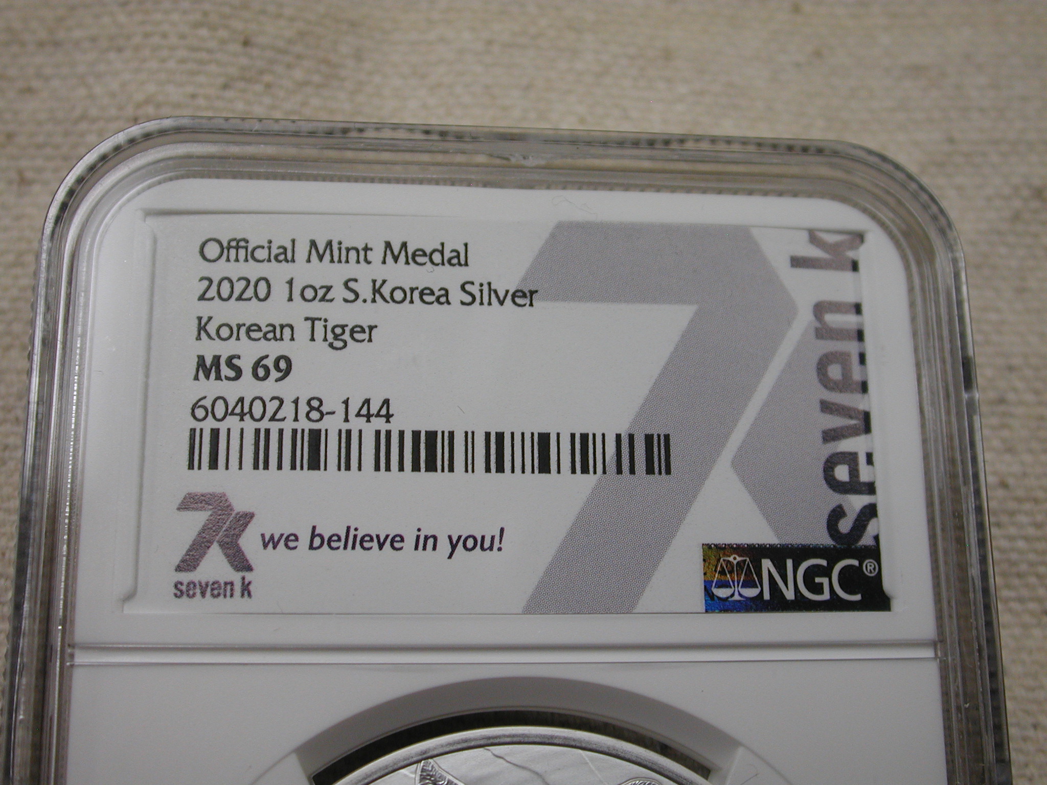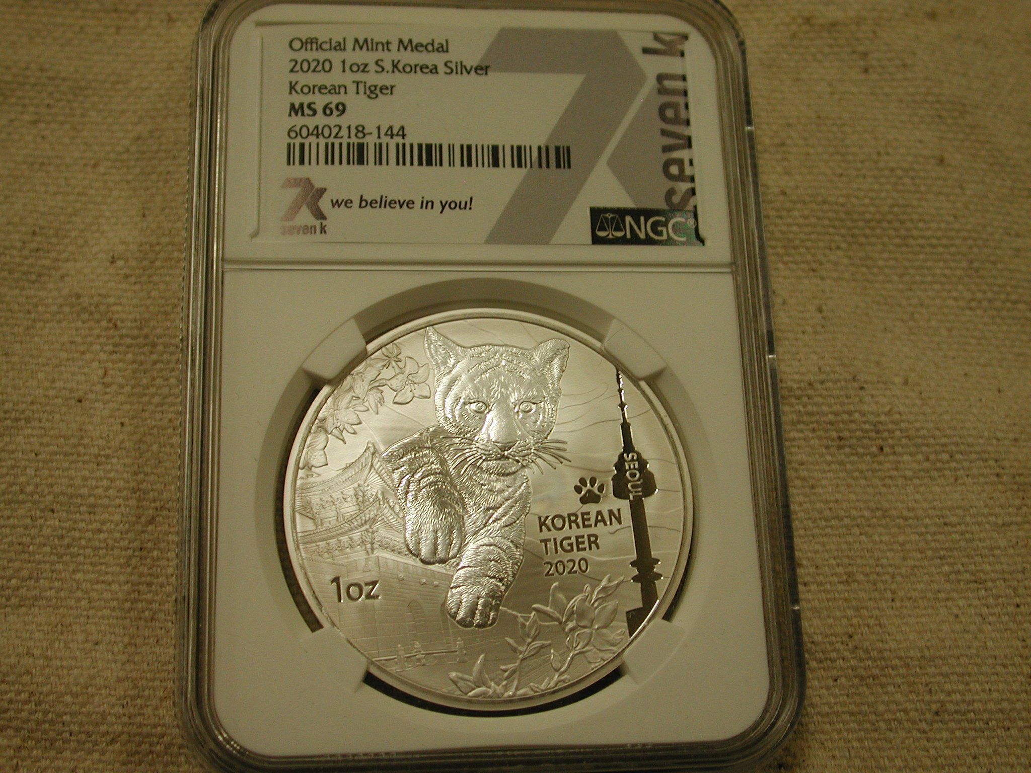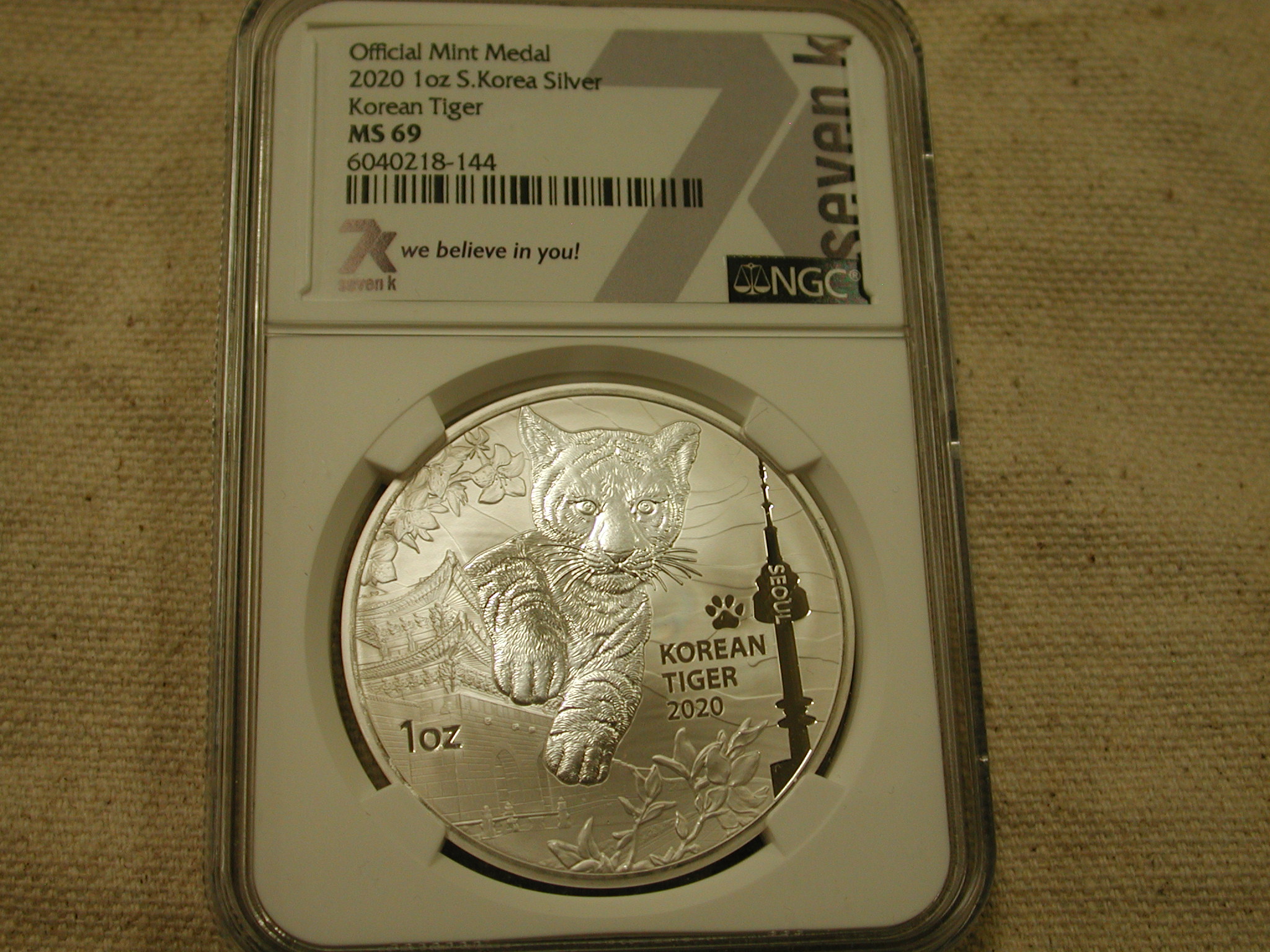 2020 – 1 Oz Silver .999 South Korea Tiger NGC MS69 Seven K