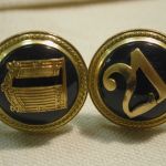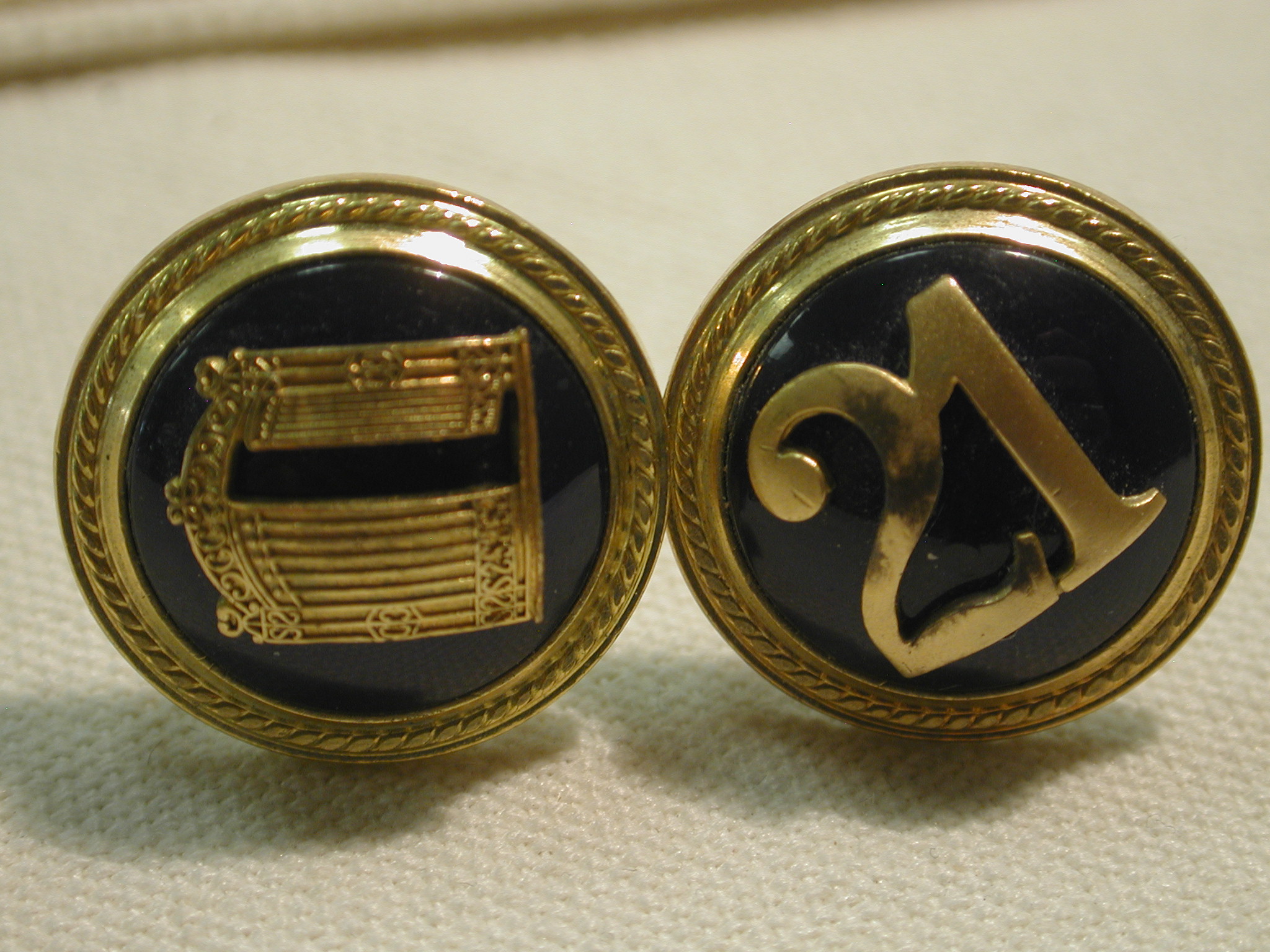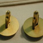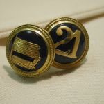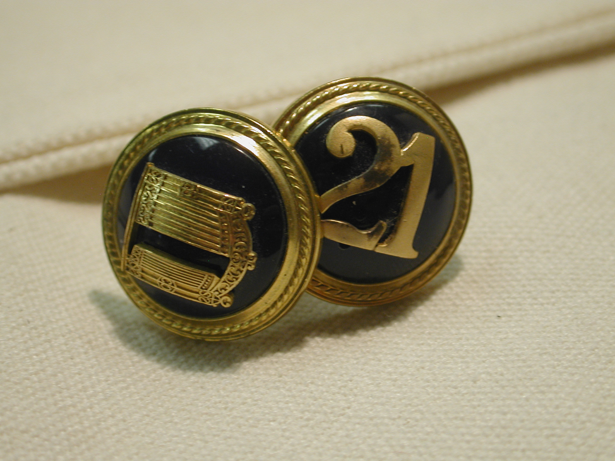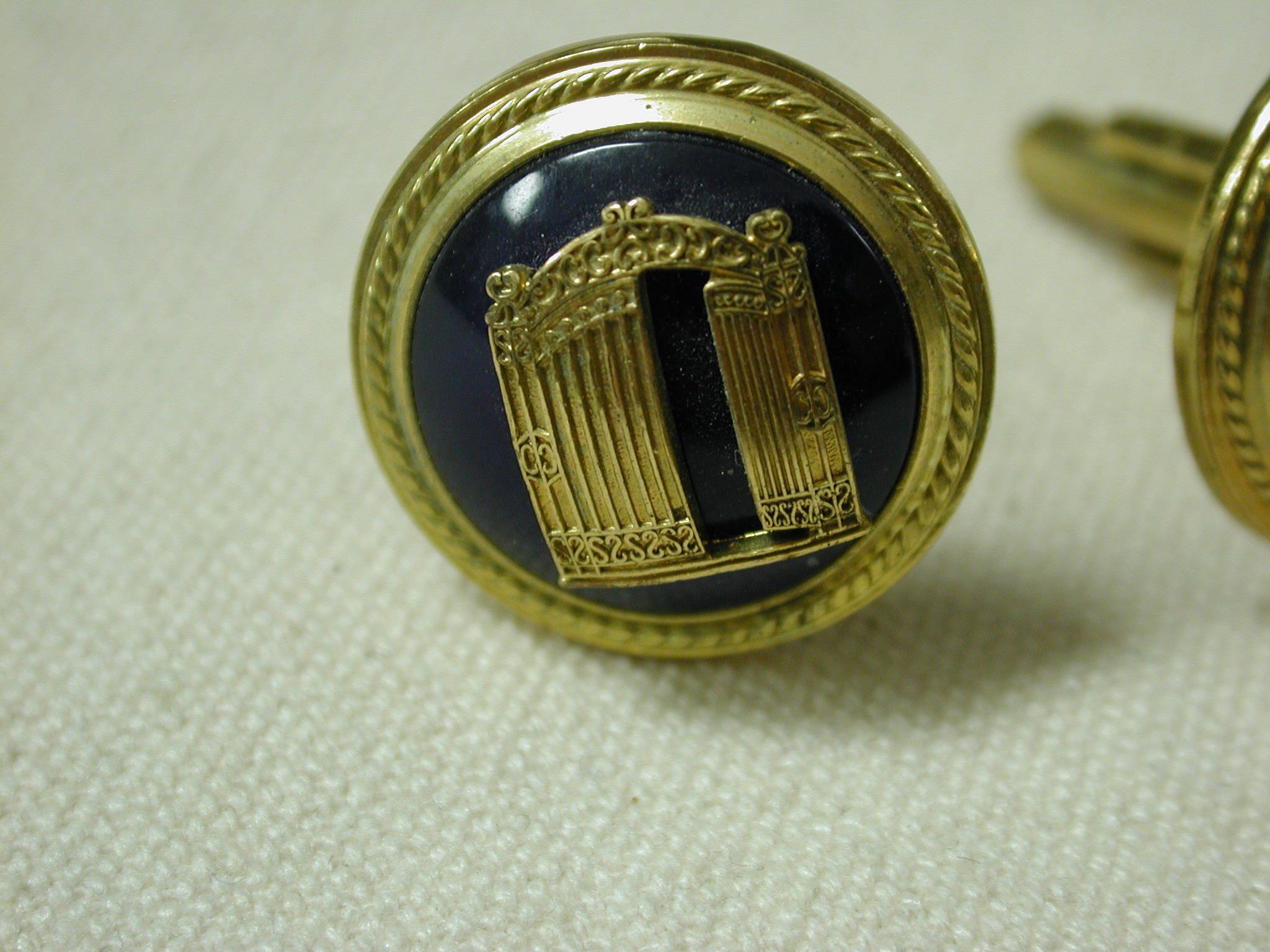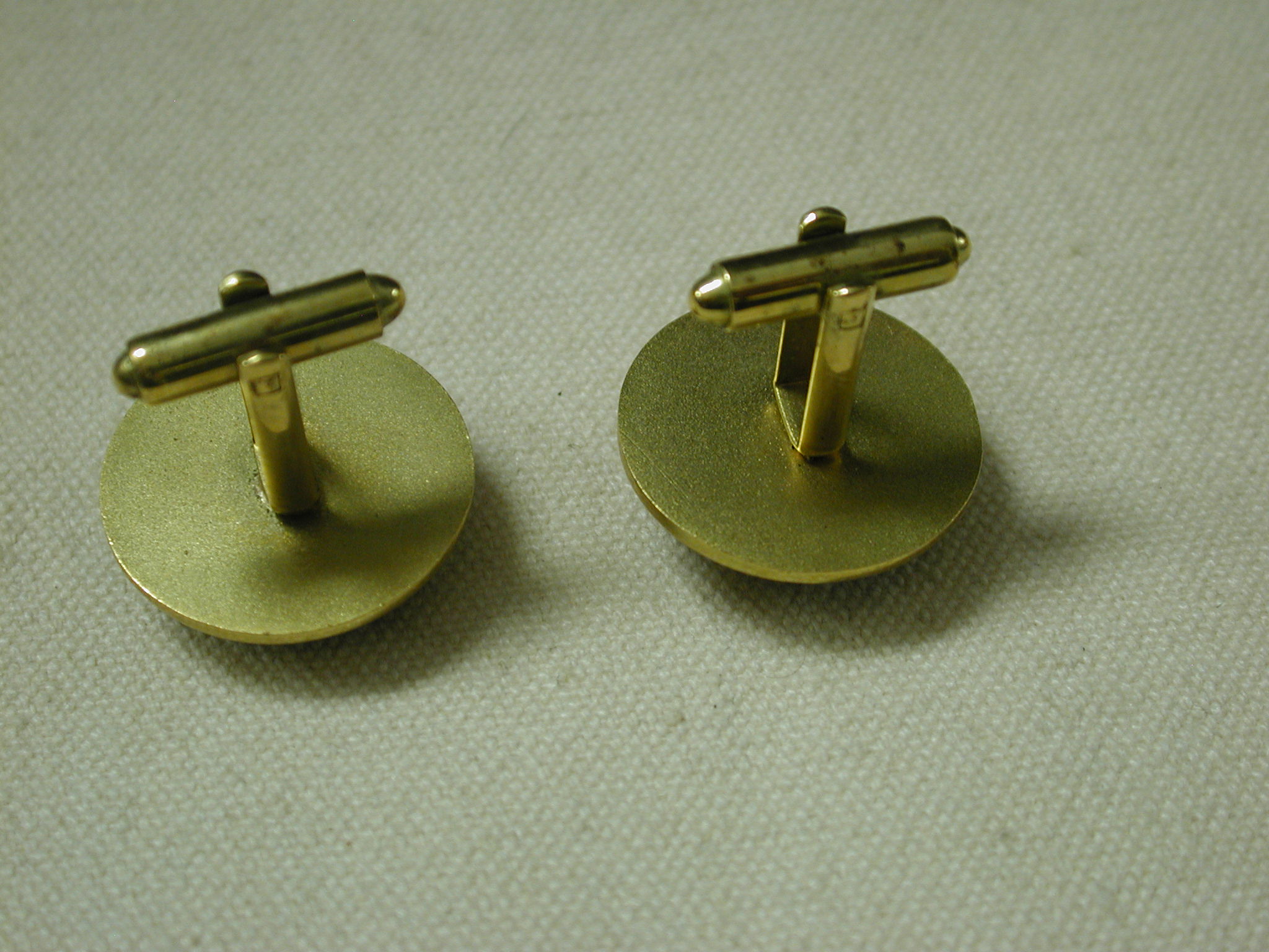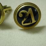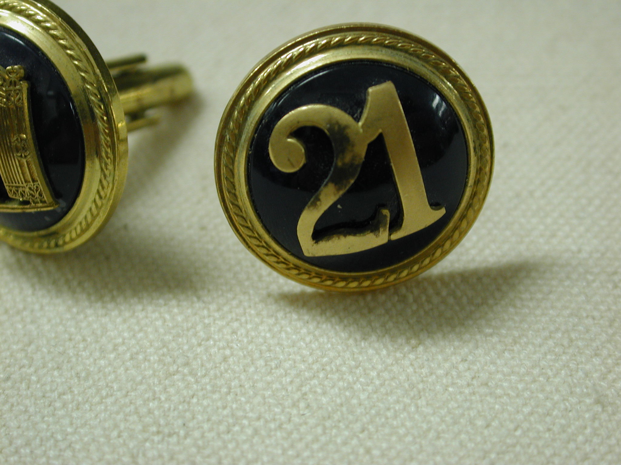 21 Club Restaurant NYC vintage gold blue enamel cufflinks 23mm round – gilted gold – some oxidation on the 2 – sizable these are not small and will make a statement!