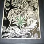 420 Marijuana Original Art Acrylic on Wood 12 x 15 Black and White theme with Green burst of color! – local Long Island artist .itsme. – wood panel is 9 x 12 mounted on the black frame which is 12 x 15. Ready to hang!