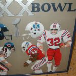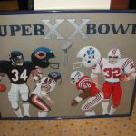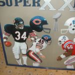 This is a very bright and large original artwork by artist Jeff Sellers depicting the Superbowl XX of 1986. He is known for doing his art on cardboard with paint and magic markers o the images really pop off the background. Dated 1/20/1986 and signed by the artist – 1 week before the actual Super Bowl.