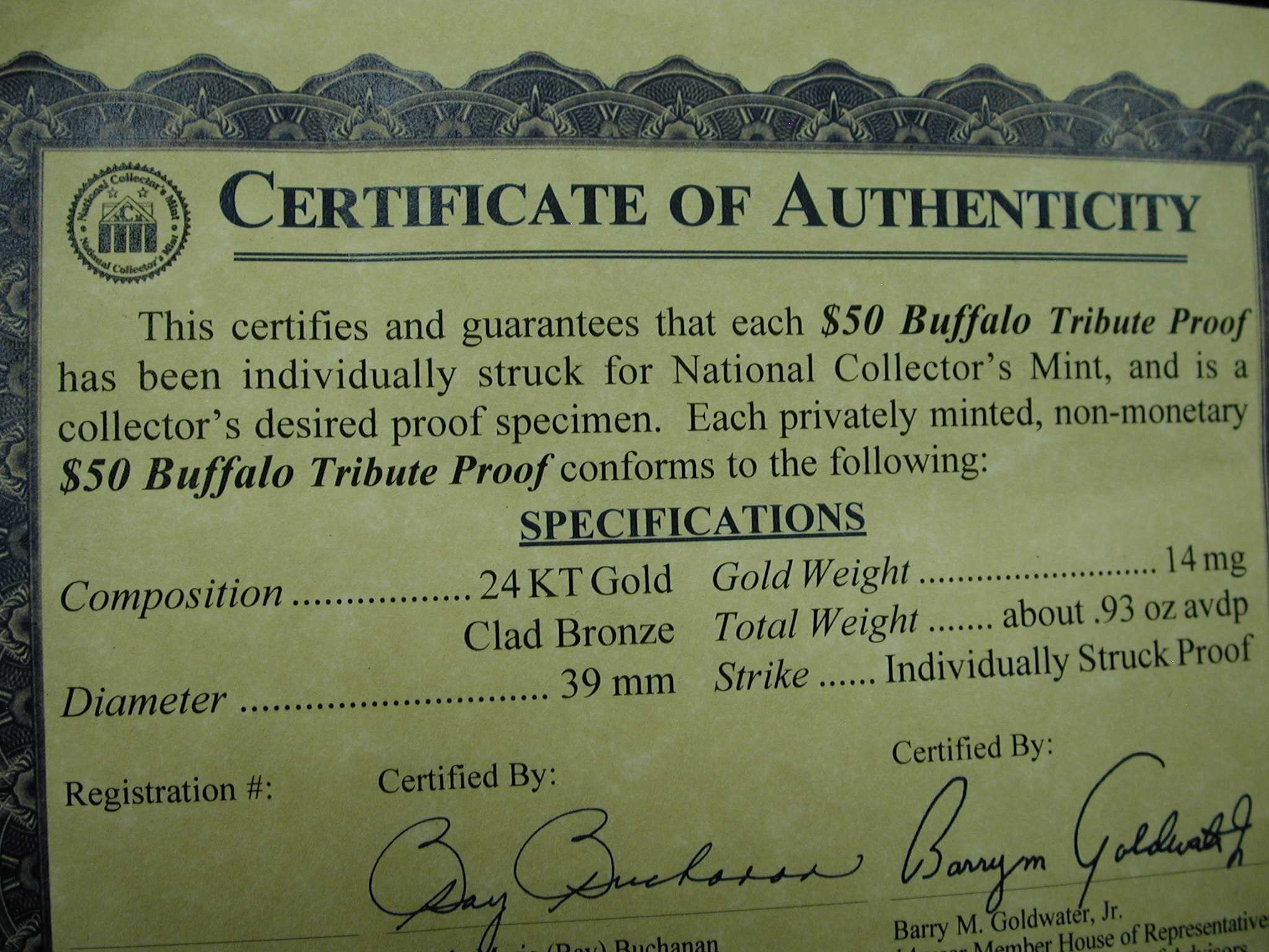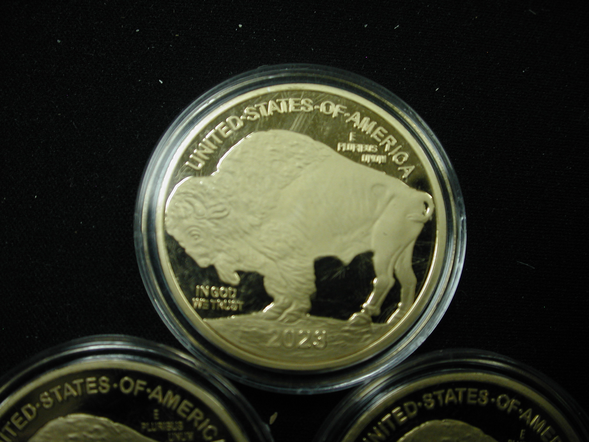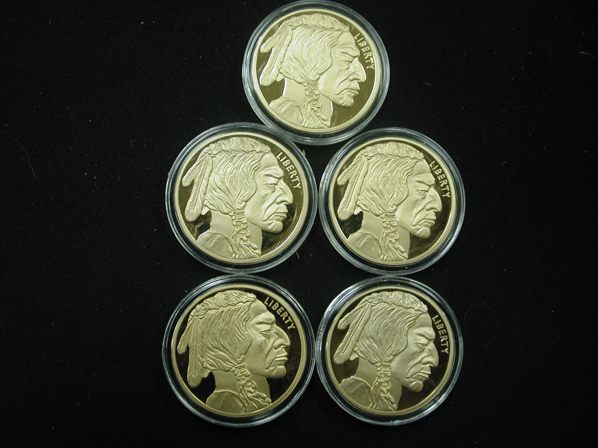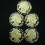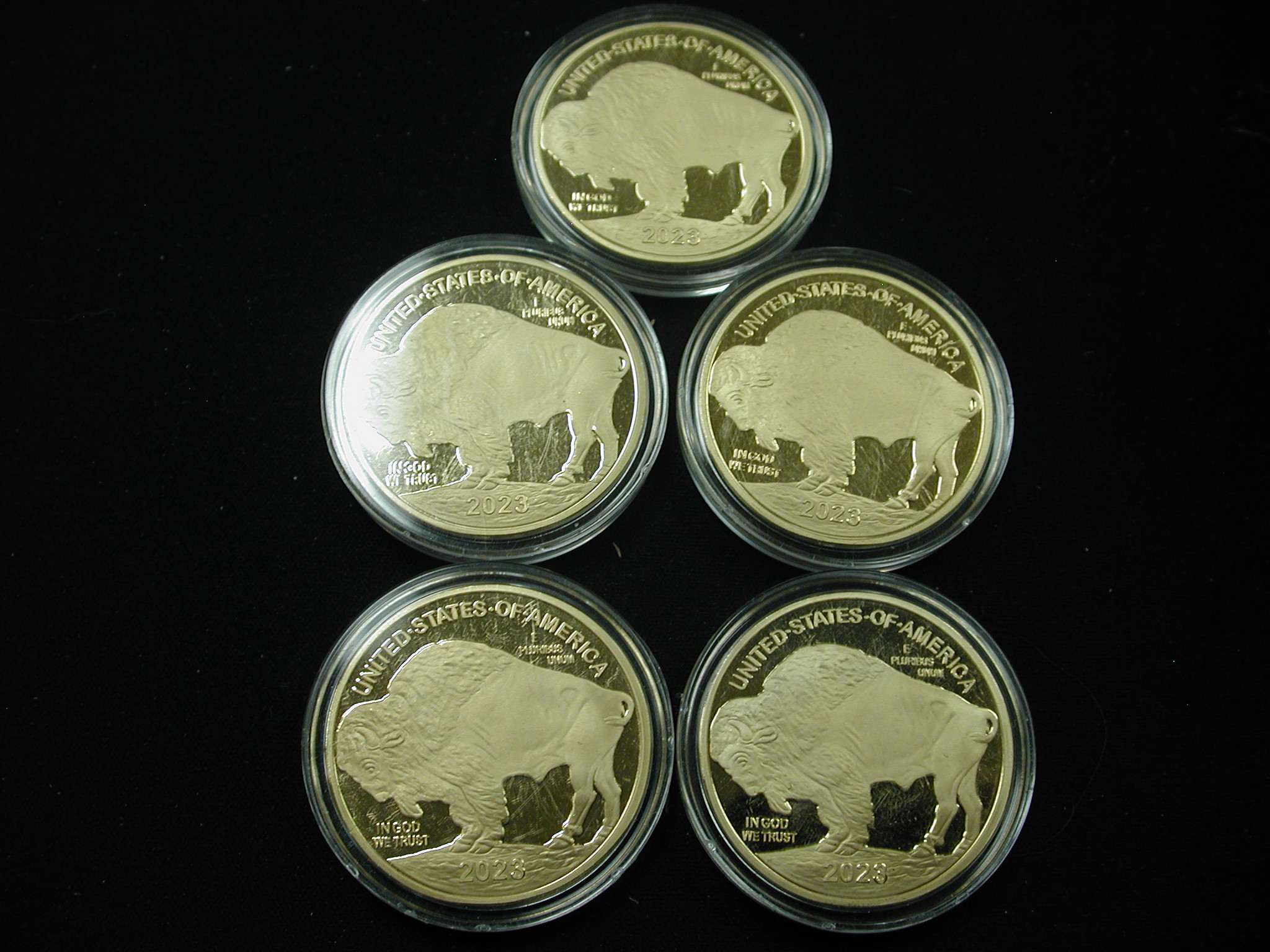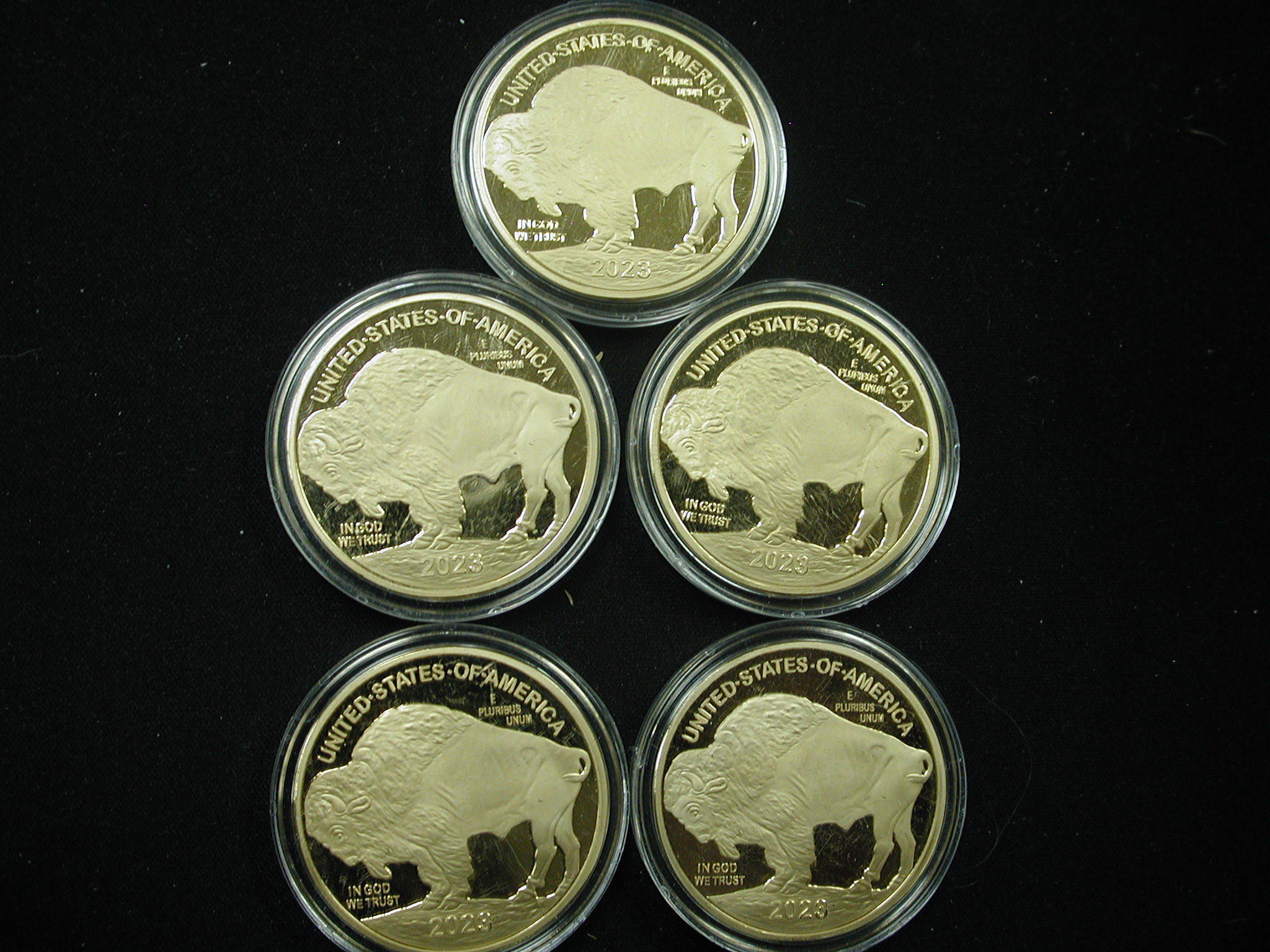 Buffalo Tribute Proof $50 Pieces Lot of 5 – these are NOT gold – they are replicas gold plated bronze coins. All 5 are from 2023.