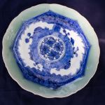 Celadon Blue and White Asian Serving Plate 9″
