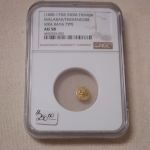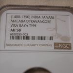 Tag: 1400 India Fanam Malabar Travancore Vira Raya NGC AU58 gold