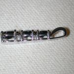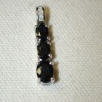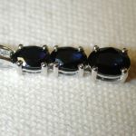 14KT Blue Sapphire Diamond 1.5 carats Past Present Future – The three sapphires are genuine dark blue in hue and one is approx. 3 x 5 and 4 x 6 and 5 x 7 mm prong set in a row. We estimate the total weight of sapphires and diamonds to be 1 1/2 carats total. There are 3 small round brilliant cut diamonds channel set in the bale. They are H color I1 clarity. On the back of the pendant it is engraved Past Present Future and has two small diamonds burnished in between the lettering. This was most likely a piece sold by Zales I think. Hallmarked 14KT and tests as such along with the brand hallmark of THL and a copyright symbol. Pendant measures 1 inch in length. Bale an accommodate a 2-2.5mm size chain (not included). We have polished and cleaned and it is ready to wear. Weighs 1.9 grams.