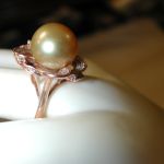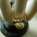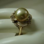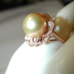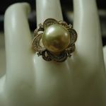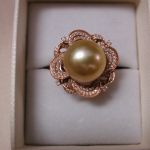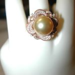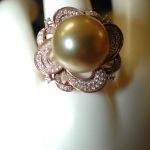 14KT Rose 12mm Golden South Sea Pearl Diamond Flower Dramatic Ring Size 8