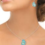 They use hard fired vitreous enamel for most of the jewelry whether 925 silver or 18k gold. Fired enamel is powdered glass that has been fired in a kiln at temperatures up to 1450°F which melts the glass into a liquid. As it cools, it becomes a solid piece of color, like the panes in a stained glass window which never change color or fade. Jewelers like Faberge and Lalique use vitreous enamel. NOTE: This listing is for the pendant ONLY – photo shows matching earrings they need to be special ordered.