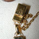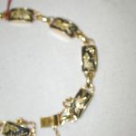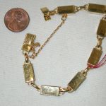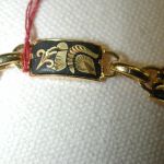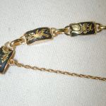 Vintage Damascene Bracelet 7″ yellow tone beautiful detail 7mm width – with a safety chain – appears to never have been worn -hallmarked