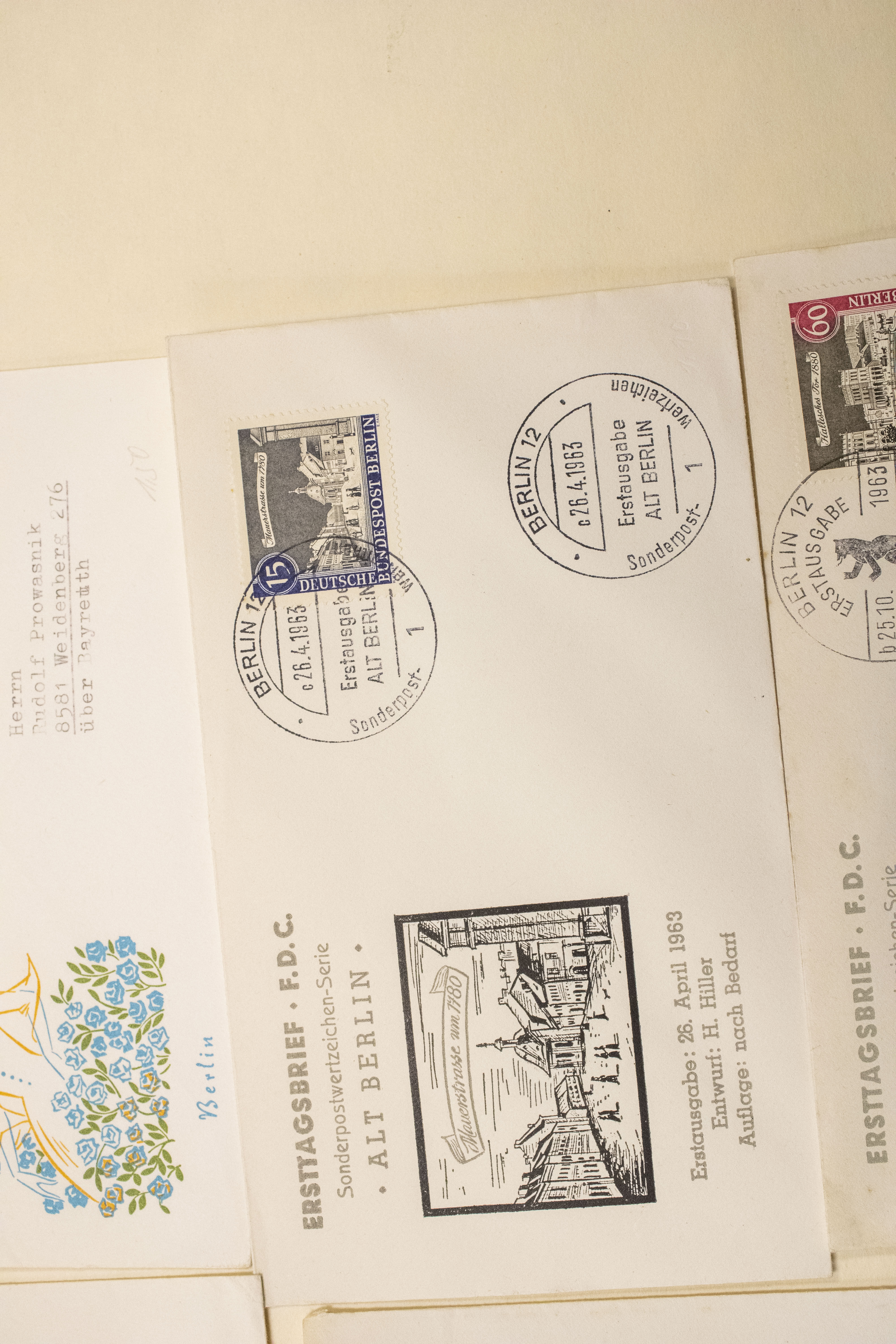 Five German Covers First Day Cancels – note one envelope is torn on top