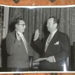 Mayor Robert Wagner swearing in Carmine Gerard DeSapio (who was an American politician from New York City. He was the last head of the Tammany Hall political machine to dominate municipal politics)