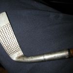 -Vintage Youth Right Handed-Hickory look Shaft Generic Putter – worn from use – the shaft is metal and has a wood look veneer that is coming off in spots