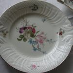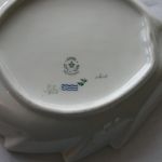 Royal Copenhagen Frijsenborg Floral serving piece set of two – one 11 inch platter 910-1864 and one scalloped bowl 9 x 7 910-1866. No issues or cracks or chips. I do see two tiny glaze dots on the platter and one tiny glaze dimple on the bowl. Like brand new never used condition. First quality hallmarks.