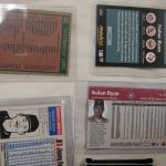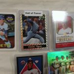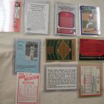 Upper Deck Nolan Ryan – Nolan Ryan Topps 580 (2) – Topps Stadium Infocard 9 of 10 – Pinnacle (2) – Purina 1 of 15, Fleer Star Stickers 88 – Fleer 33 – Pinnacle 290 – Jimmy Dean 16 of 28, Topps 312 Strikeout Leaders – Score 91 4-417-686, Topps 533-Focus – Upper Deck Q-13, Topps 101 1213/1969 foil – American Sports Monthy – Topps Bowmans Best Nolan Ryan Alex Rodriguez, M&Ms 22 of 24, Future Hall of Famer card, Wonder Stars 16 of 20, 1993 Bleachers Card 23kt gold sculptured card in black outer box.