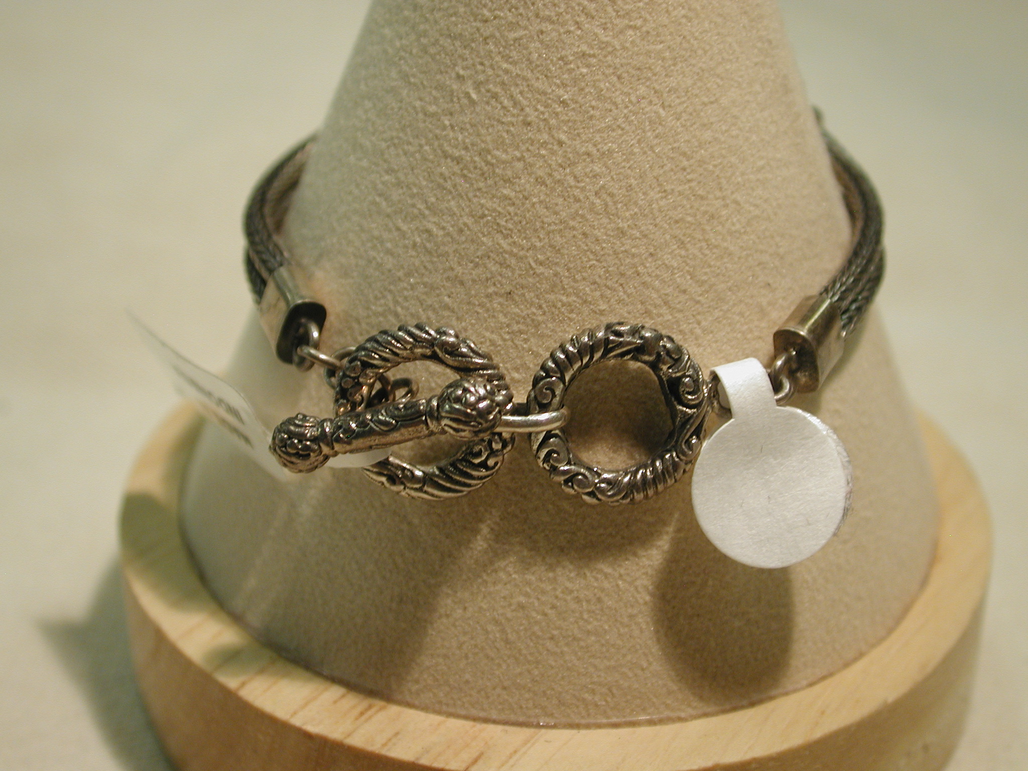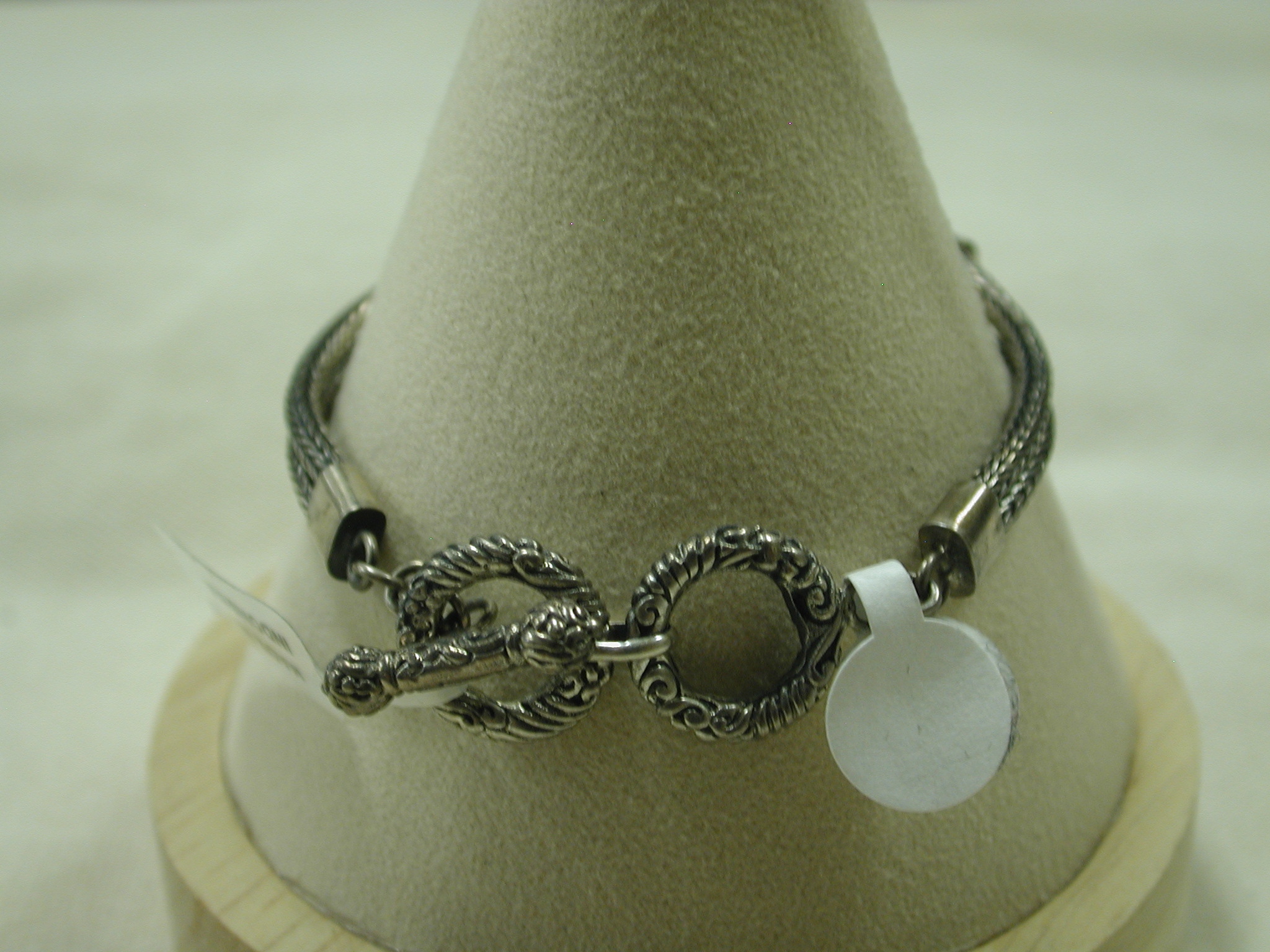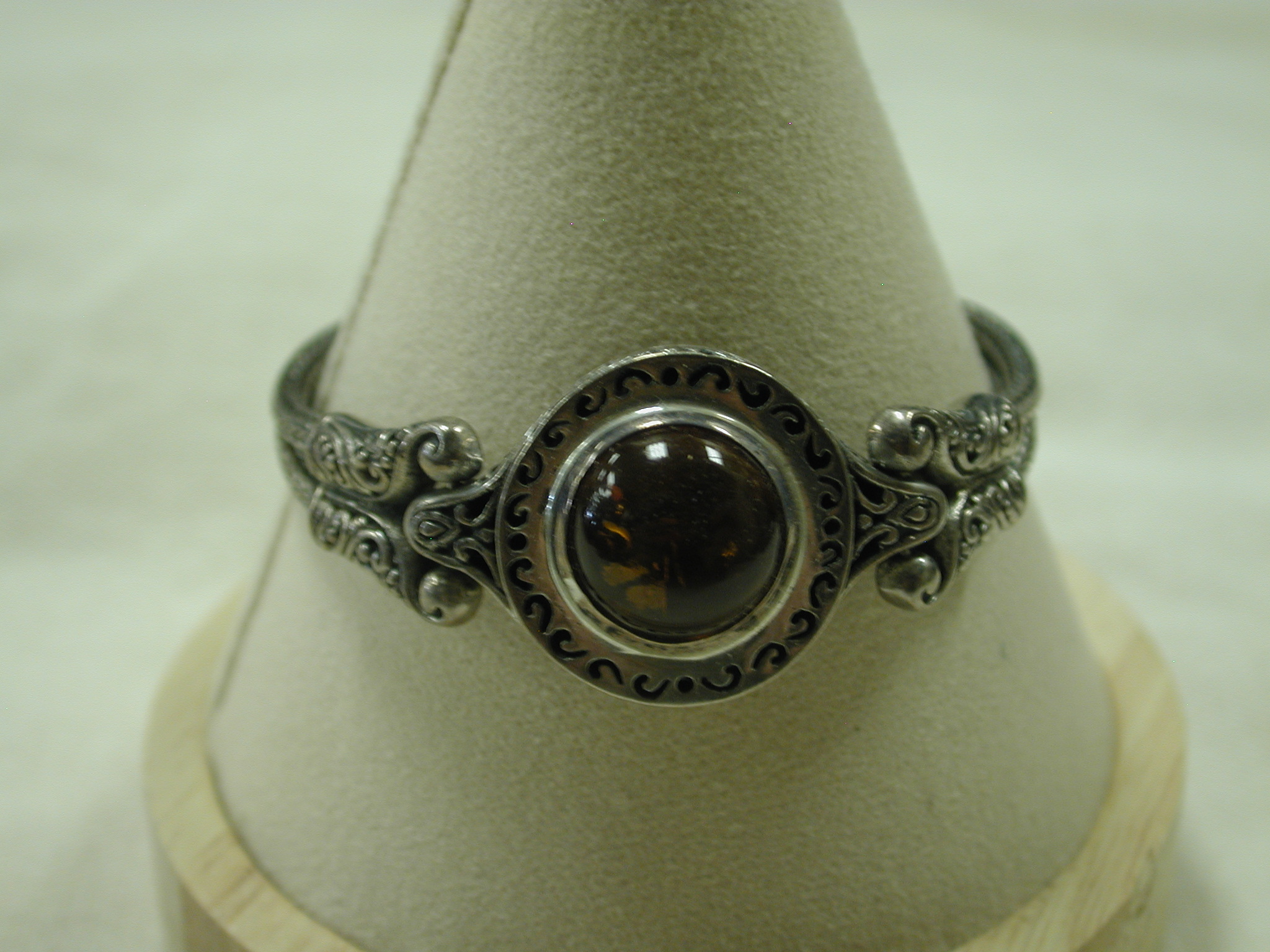Sterling Amber Bali toggle bracelet 23mm center New with tags – intricate cut out details extremely well made – weighs 32 grams. Will fit a standard 7 inch wrist. Has an antiqued look to it however could also be polished for a brighter hue. Made in Indonesia and is hallmarked 925.