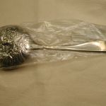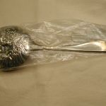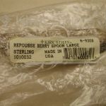 Repousse Berry Kirk Stieff Large Spoon Sterling Made in USA – NEW still in package – never opened – This sat in a storage unit for over 25 years apparently – spoon has tarnish Weighs 4.2 oz
