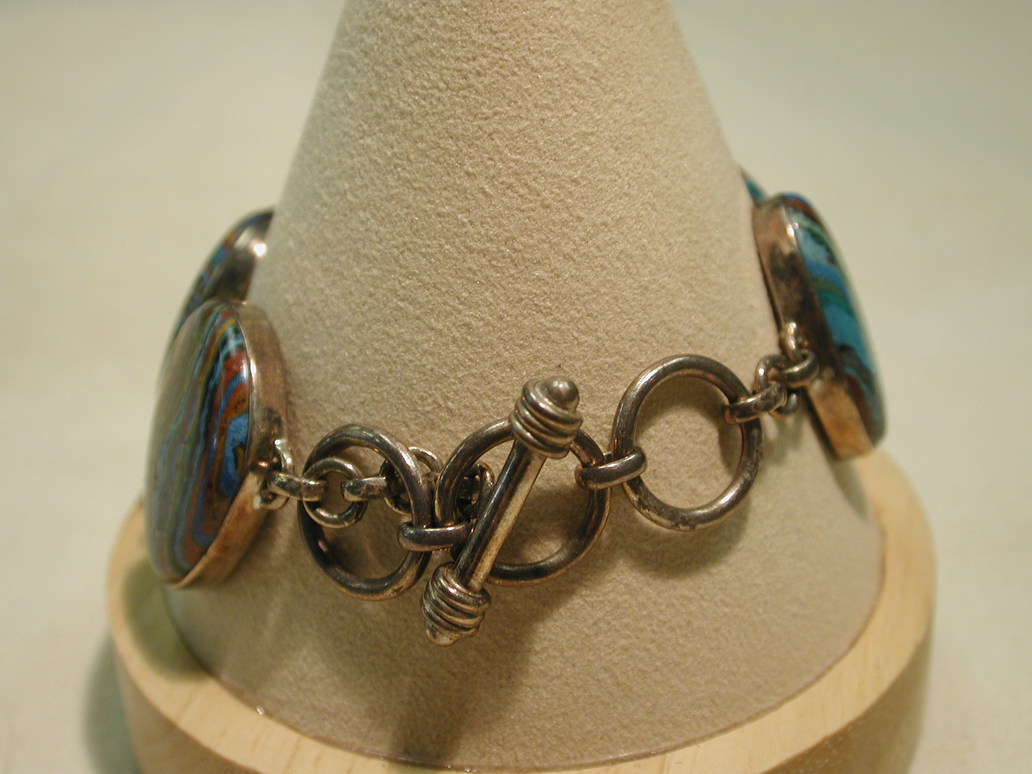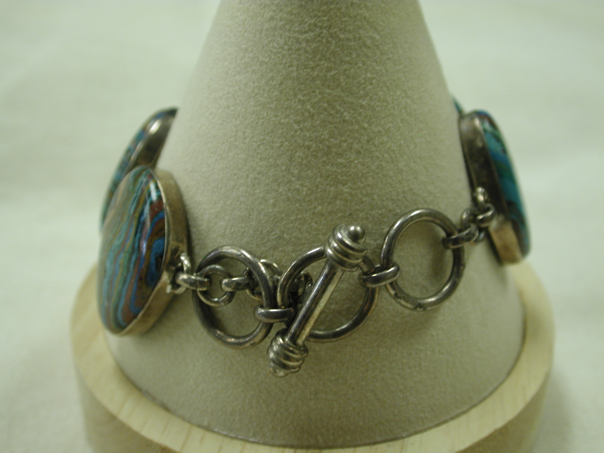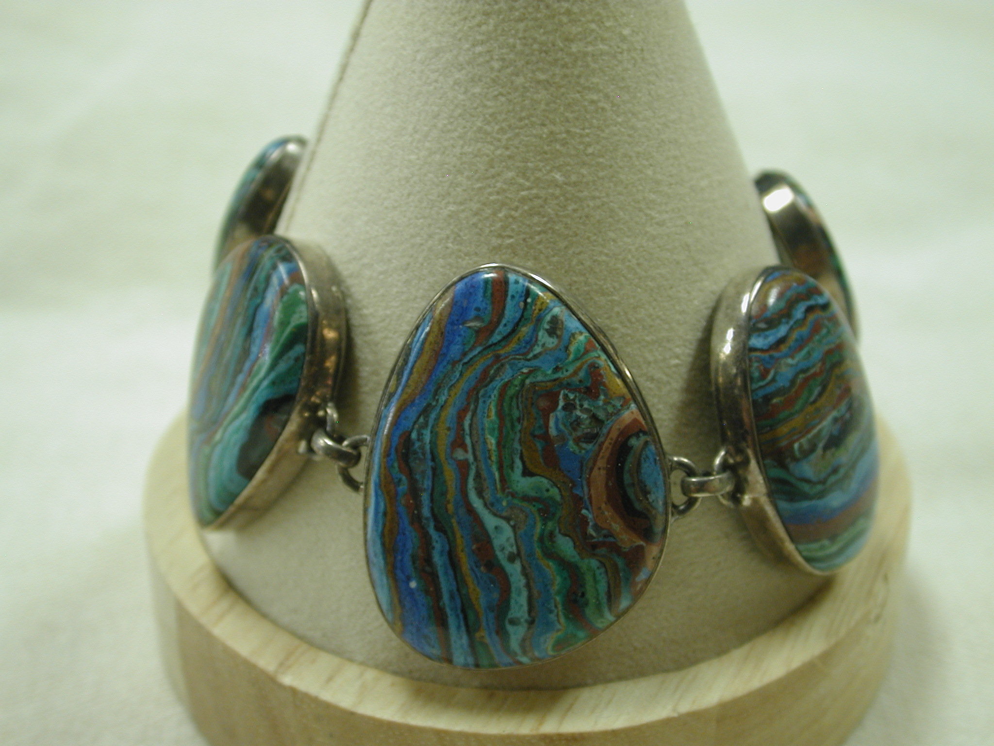 Sunset Chrysocolla-Malachite Dramatic Cuff Sterling Toggle Bracelet 8 1/2 Inches