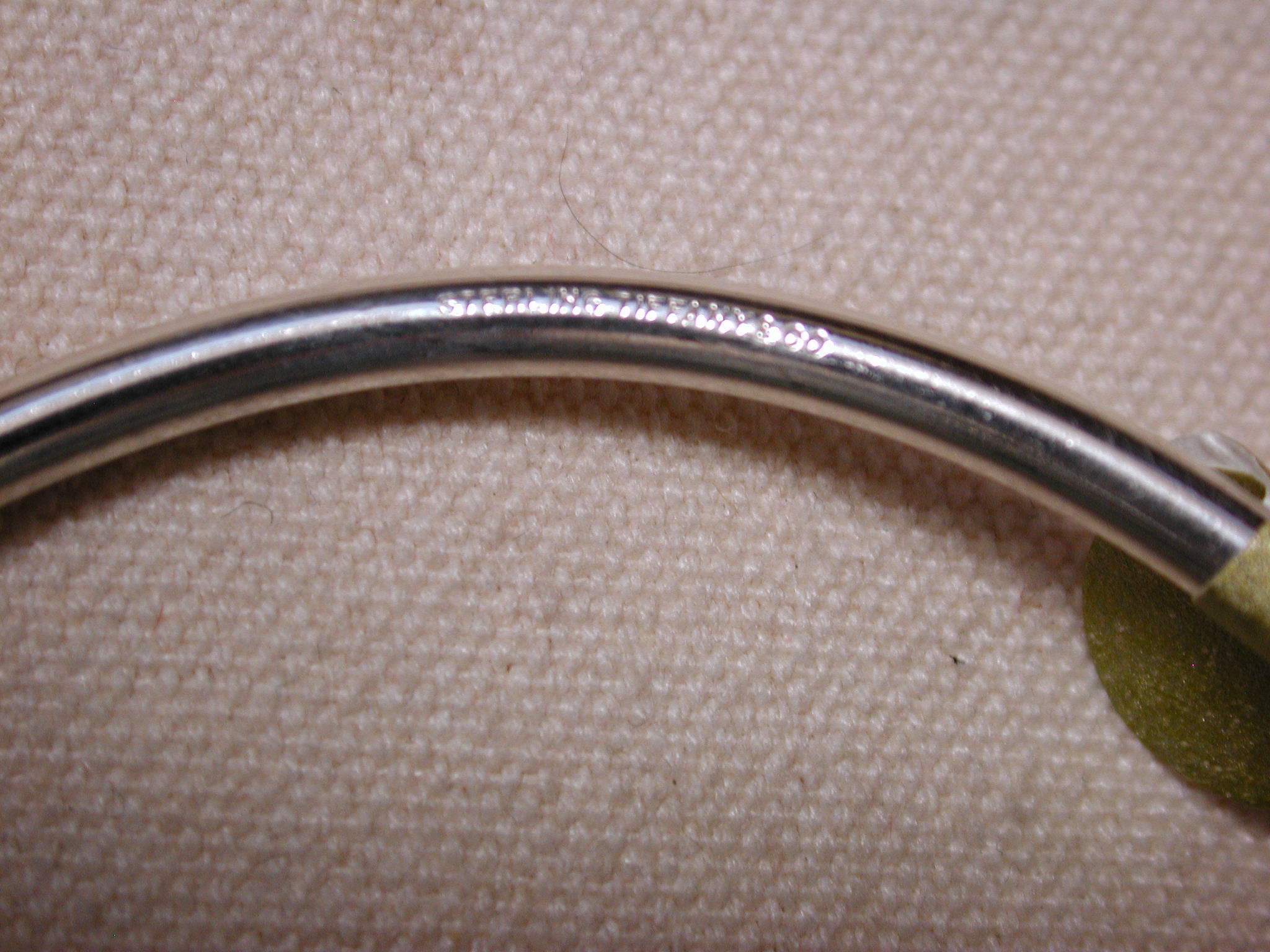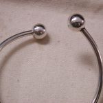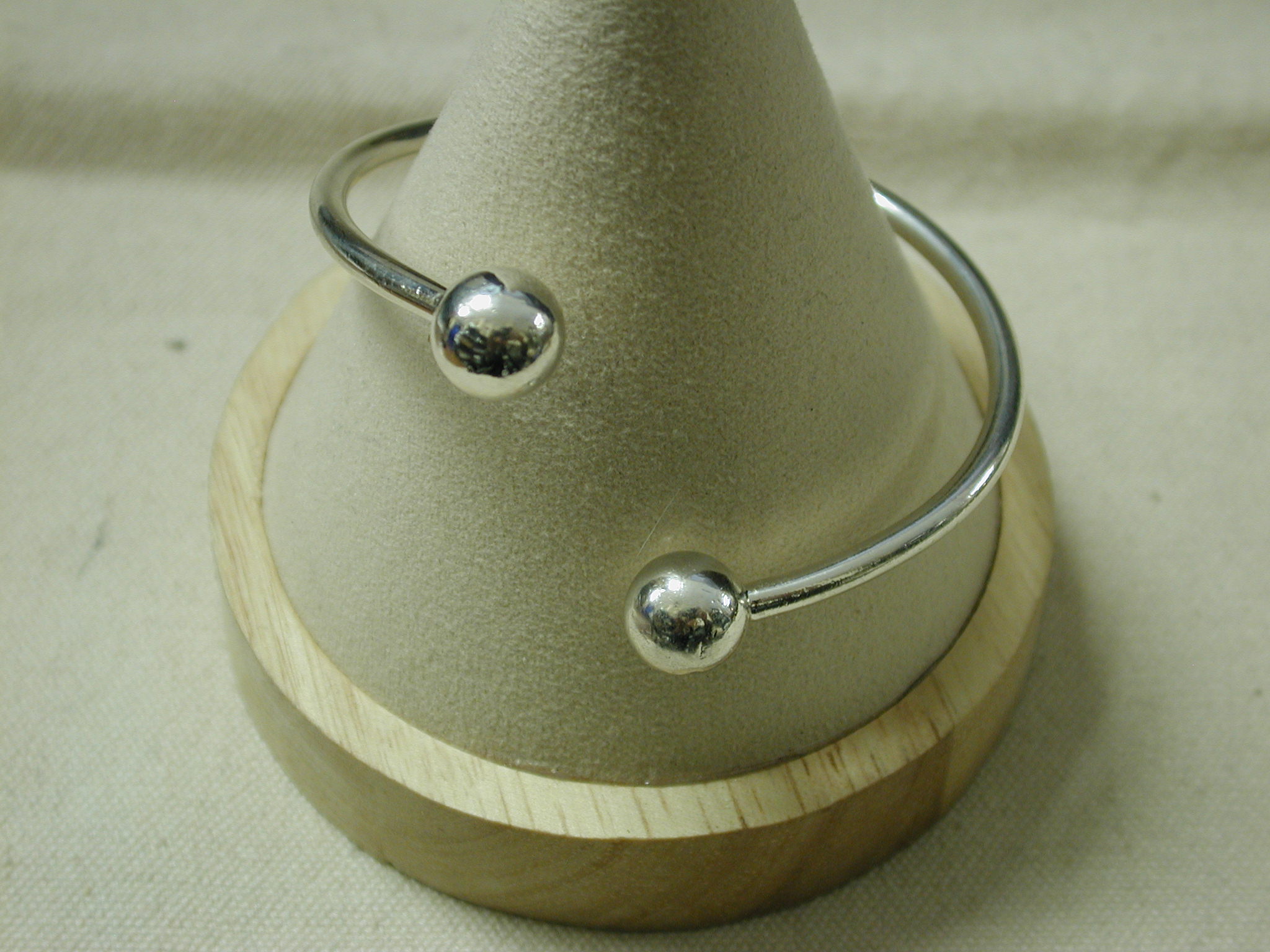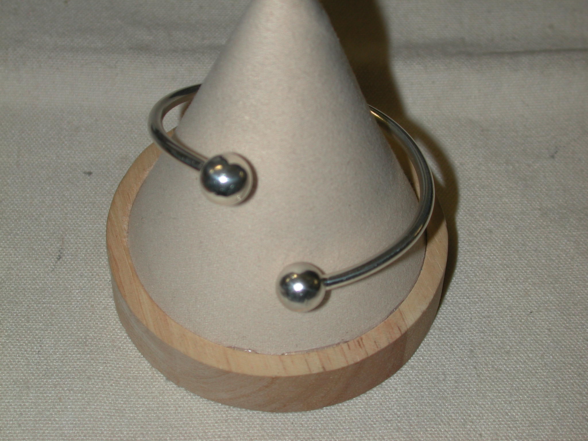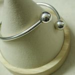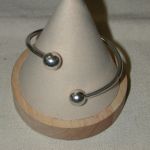 Tiffany Sterling Bypass Cuff 11mm Ball Bangle Vintage – this vintage piece is rare – solid bangle with solid balls on the ends – it is assymetrical and looks amazing on. Will fit a standard 7 inch wrist – it is NOT flexible so you have to be able to get your wrist into the 1″ space between the balls. I note a slight bend in the tubing from wear – its very slight see the photos and the two balls under a loupe you can see some slight dings and scuffs. The bracelet measures 2 5/8 inches wide. The tubing portion is 3mm round. Hallmarked Tiffany & Co. Sterling and weighs 22 grams. Will come with the tiffany pouch but I note it has a few spots from aging.