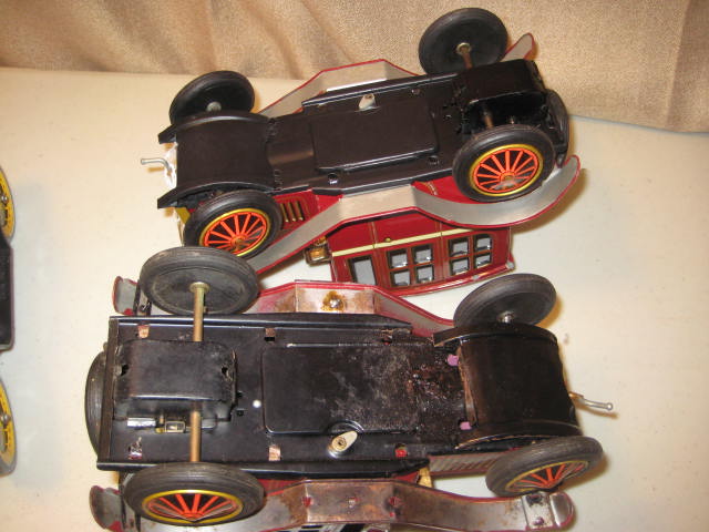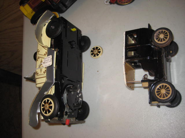 1 – The 1917 appears to have all its parts and bobble head driver looks good – Battery compartment looks okay – I note some rust on edges – this car also has some plastic yellow and black components and also has some dents in the cab.