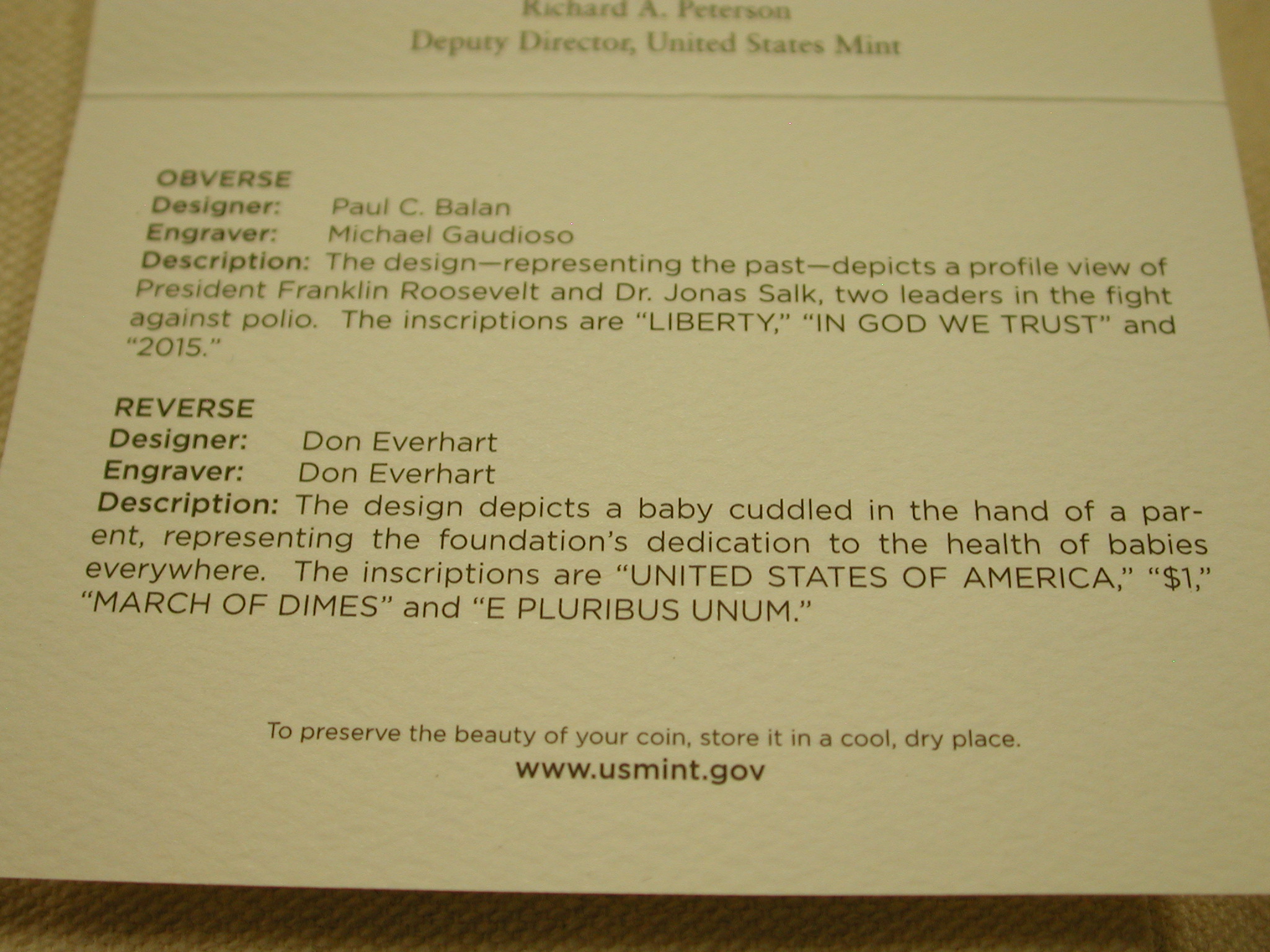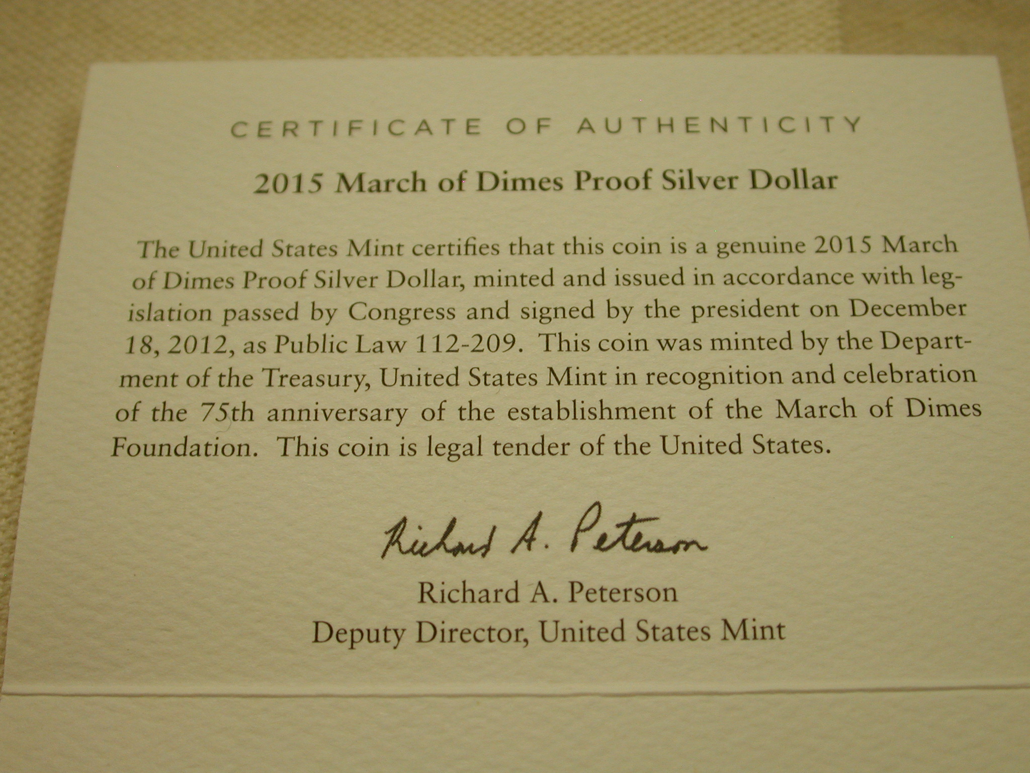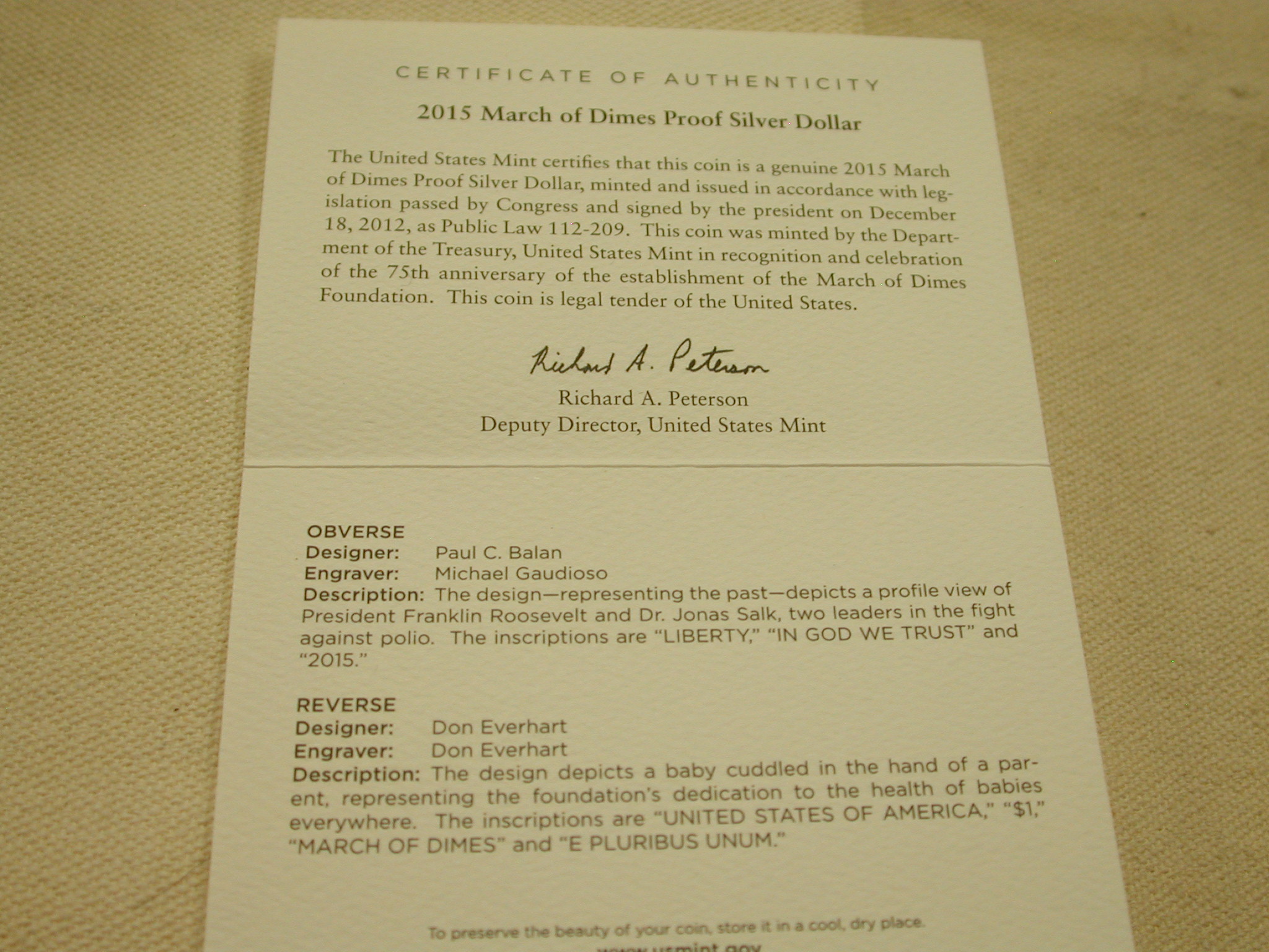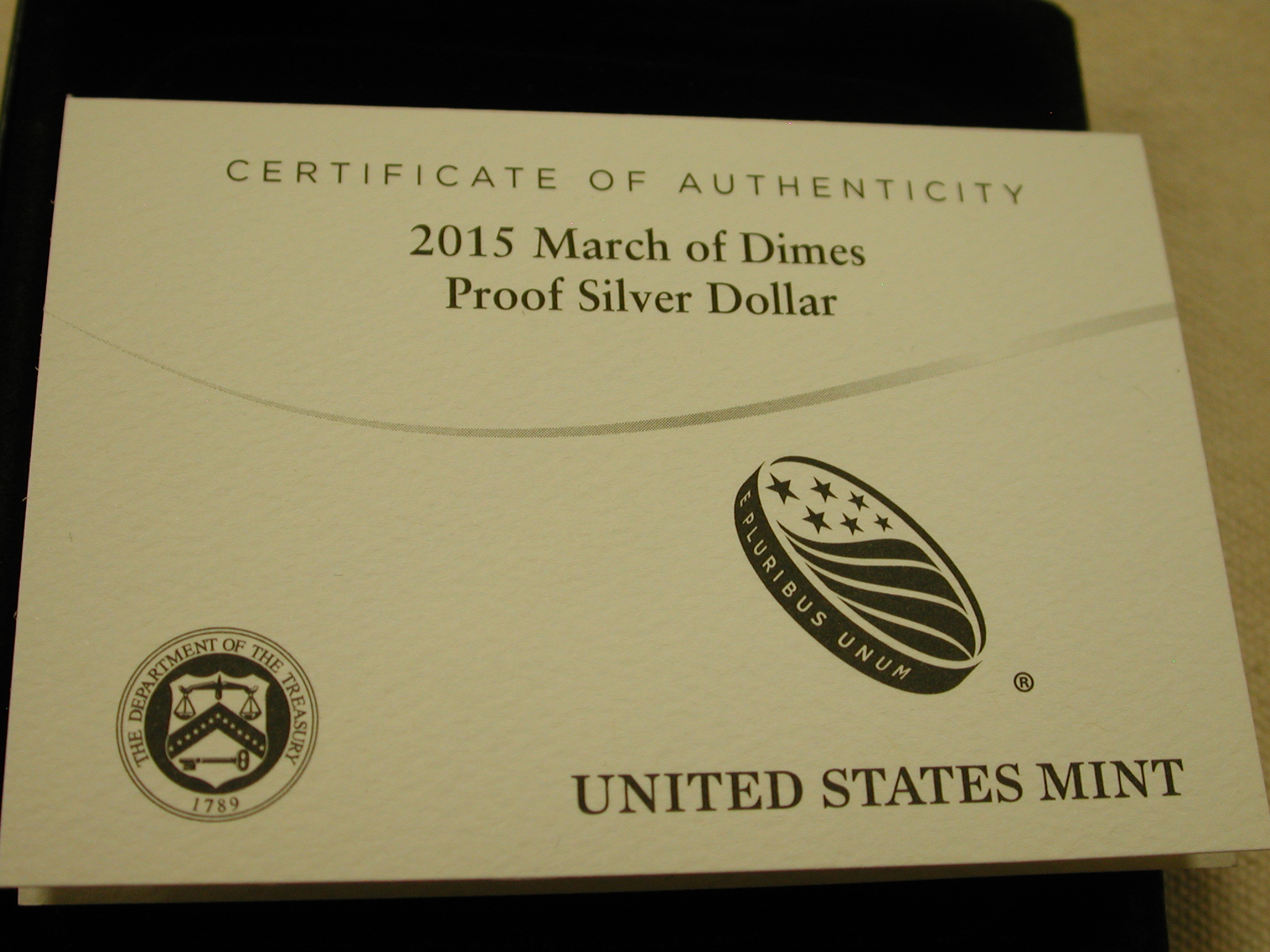 U.S Mint 2015 March of Dimes Silver Dollar Proof with govt packaging