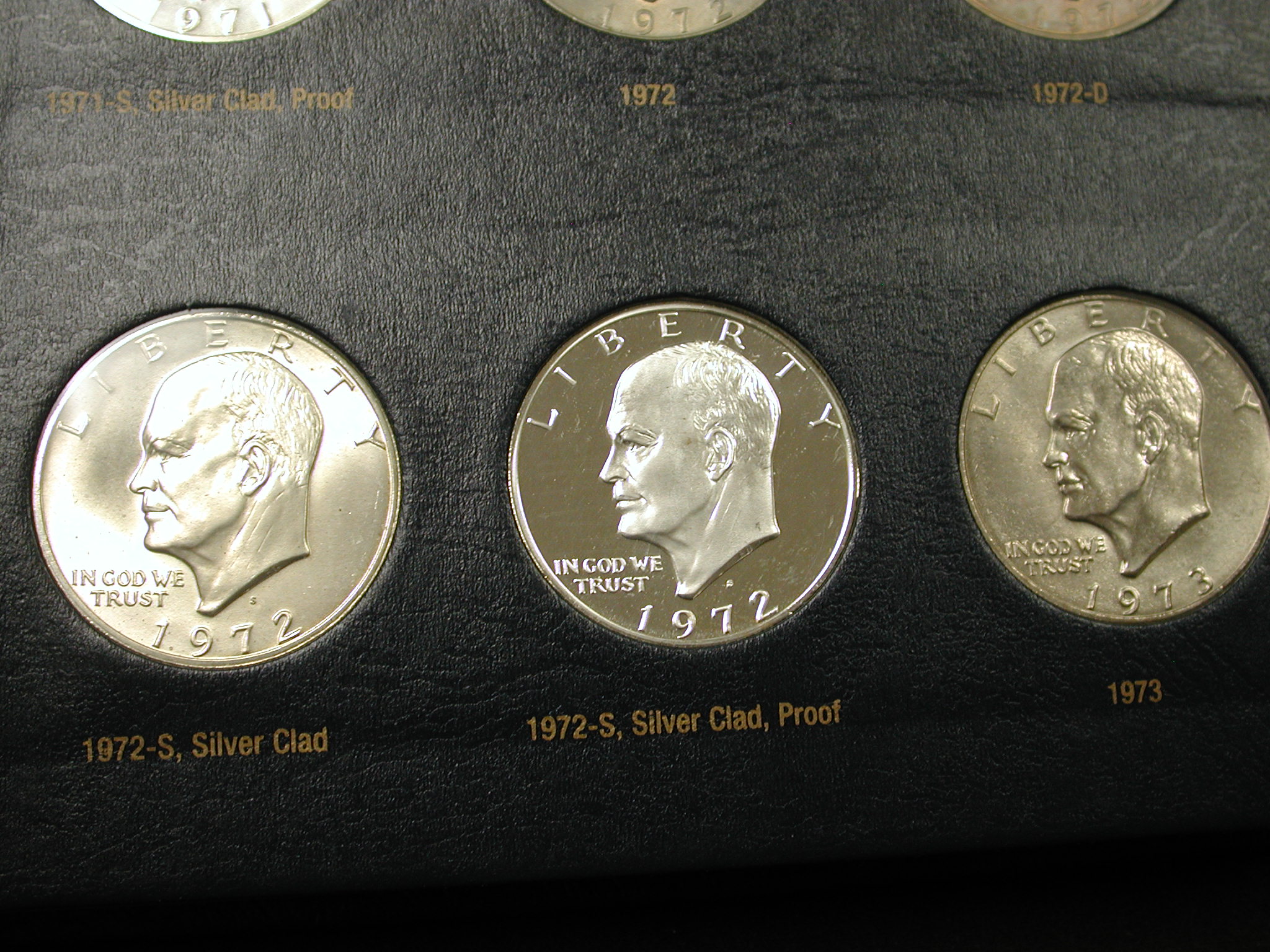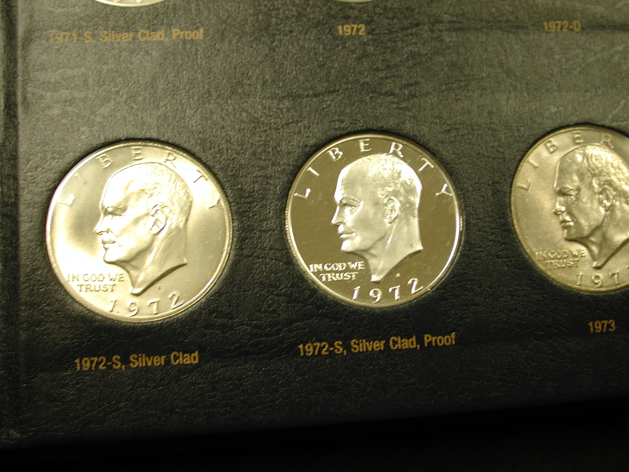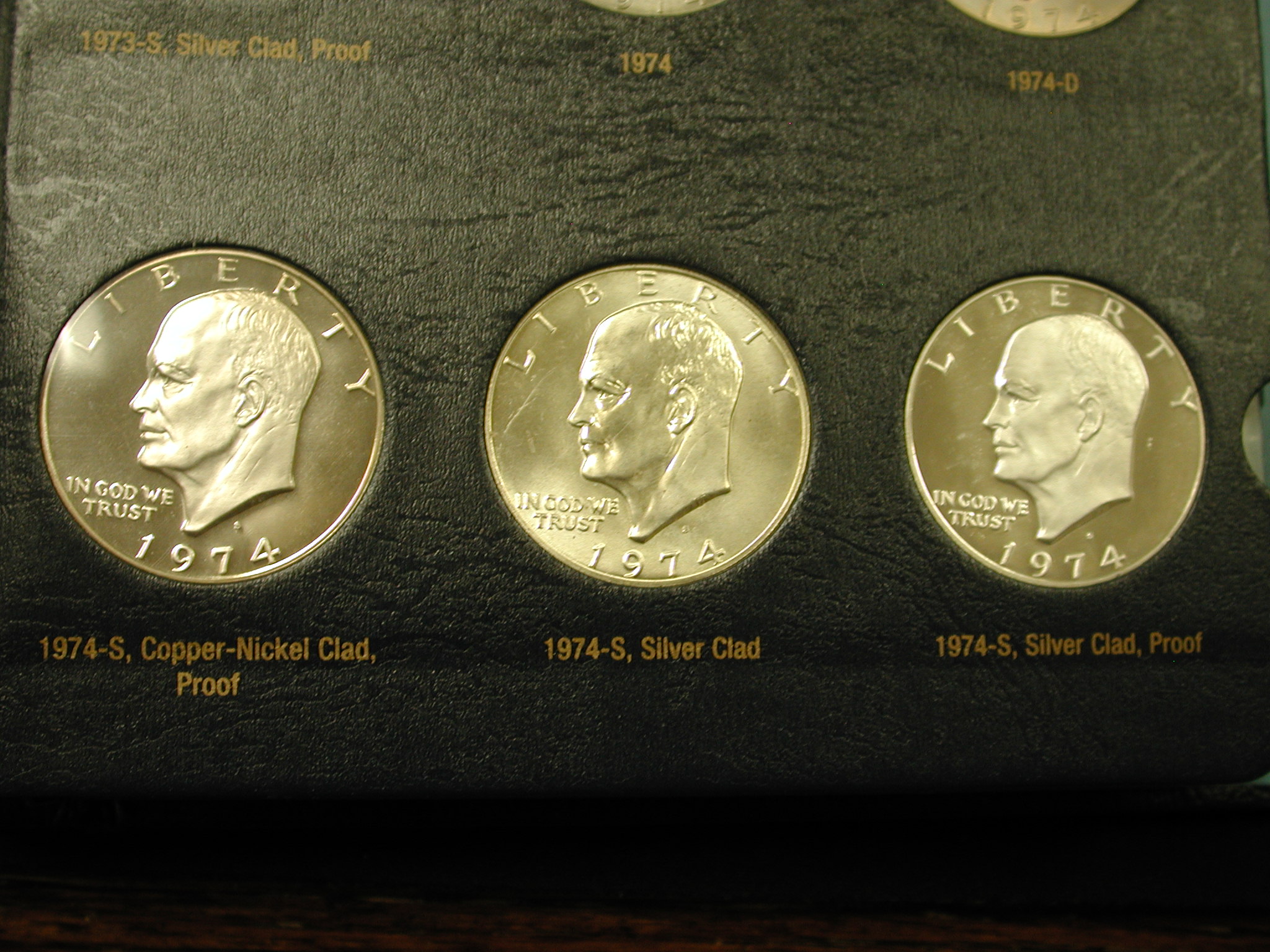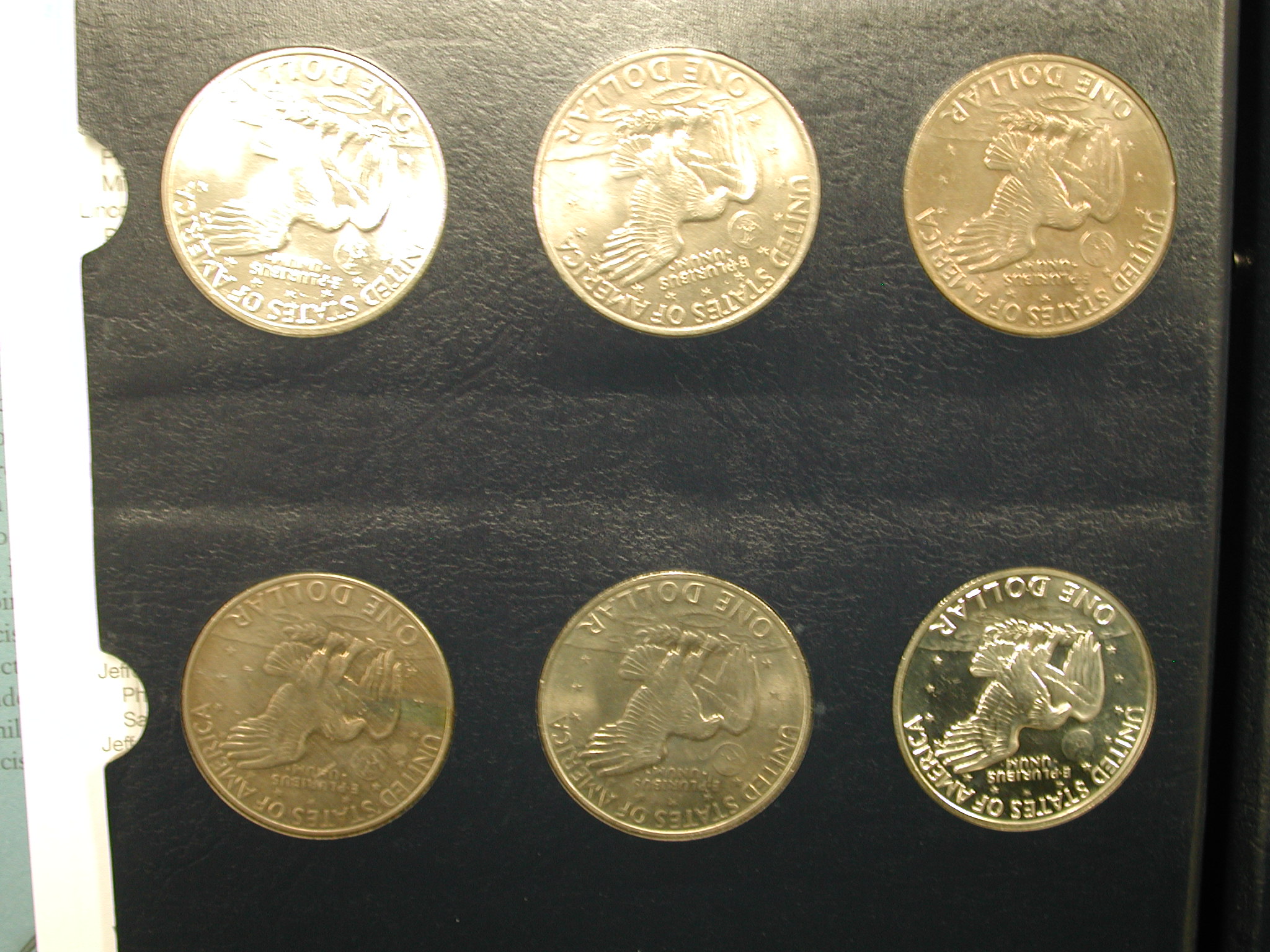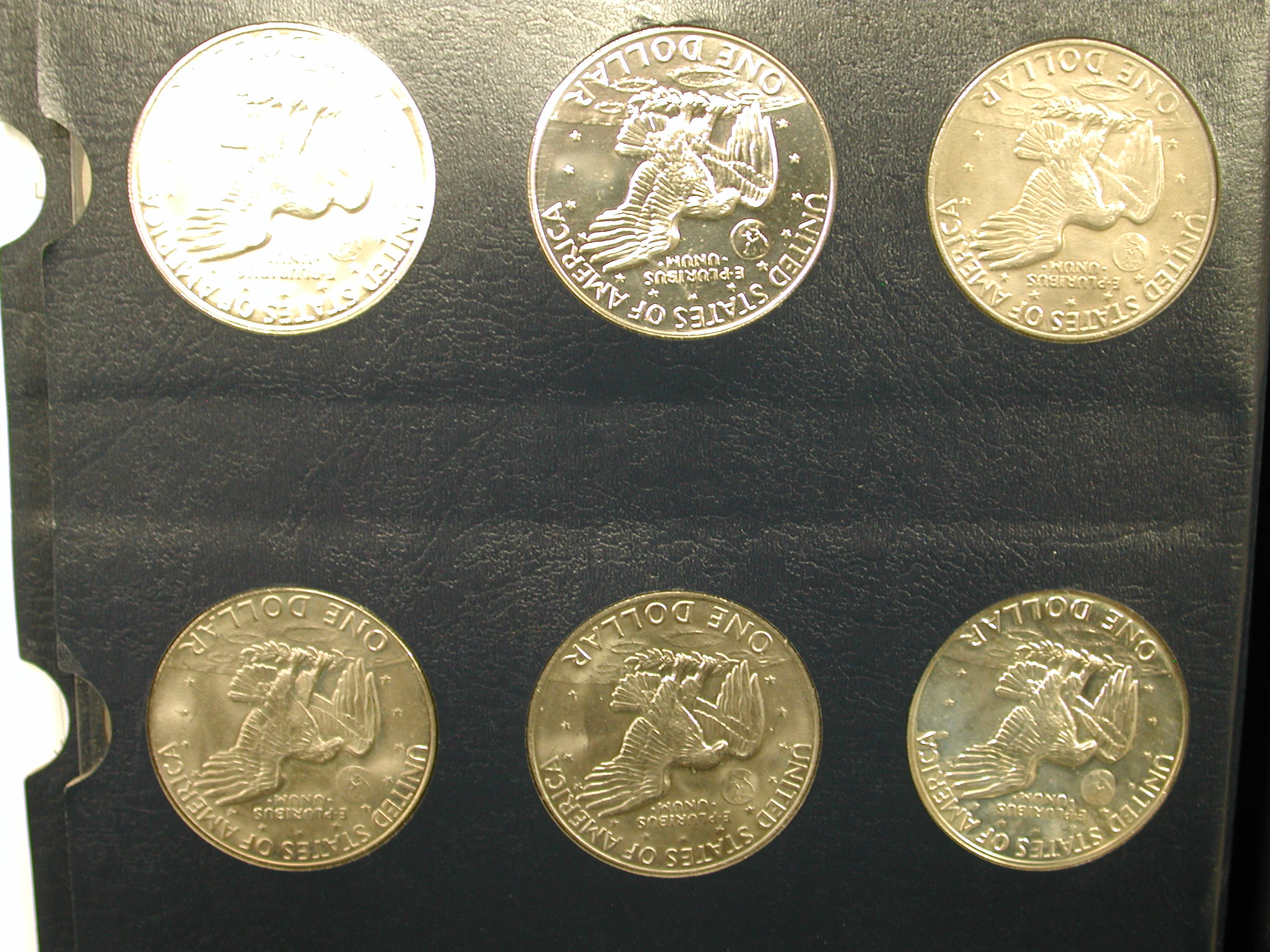 1971-1978 Eisenhower Dollars Philiadelphia, Denver, SF Mints – Amazing full set of 32 uncirculated Eisenhower dollars 1971-1978 in Whitman book. The set includes 1971, 1971-D, 1971-S Silver Clad, 1971-S Silver Clad Proof, 1972, 1972-D, 1972-S Silver Clad, 1972-S Silver Clad Proof, 1973, 1973-D, 1973-S Copper-Nickel Clad Proof, 1973-S Silver Clad, 1973-S Silver Clad Proof, 1974, 1974-D, 1974-S Copper-Nickel Clad Proof, 1974-S Silver Clad, 1974-S Silver Clad Proof, 1776-1976 Variety 1, 1776-1976 Variety 2, 1776-1976-D Variety 1, 1776-1976-D variety 2, 1776-1976-S Copper-Nickel Clad Variety 1 Proof, 1776-1976-S Copper-Nickel Clad Variety 2 Proof, 1776-1976-S Silver Clad Variety 1, 1776-1976-S Silver Clad Variety 1 Proof, 1977, 1977-D, 1977-S Proof, 1978, 1978-D, & 1978-S Proof. No Eisenhower dollars were struck in 1975. The coins and book are in great condition and the book measures about 7.25” x 9”. Any questions please message me. Thanks for looking.