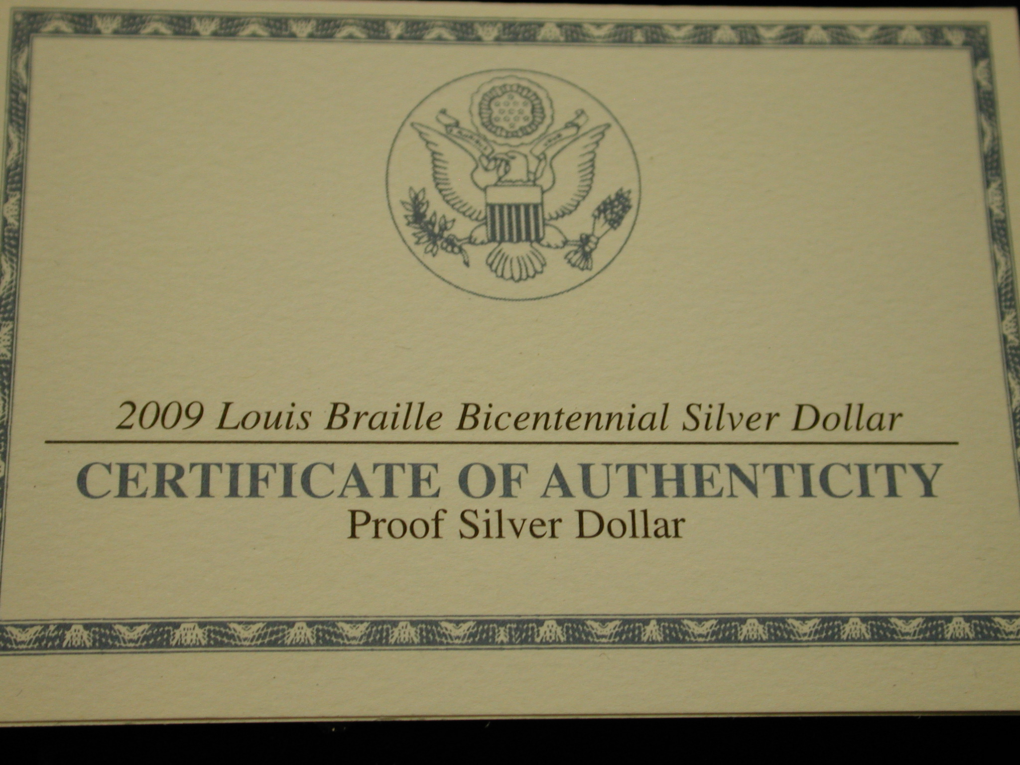 U.S Mint 2009 Louis Braille Bicentennial Silver Dollar