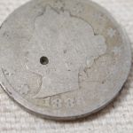 1886 U.S. Liberty Nickel 5 Cents (2nd Lowest Mintage) in about Good with a sizable divet in its cheek.