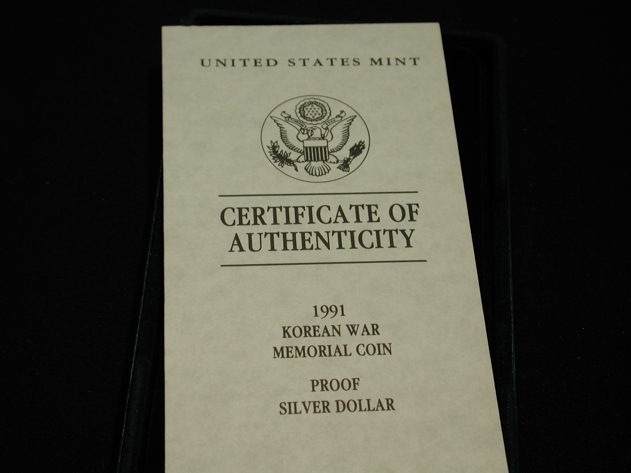 1991 U.S Korean War Memorial Coin Proof Silver Dollar