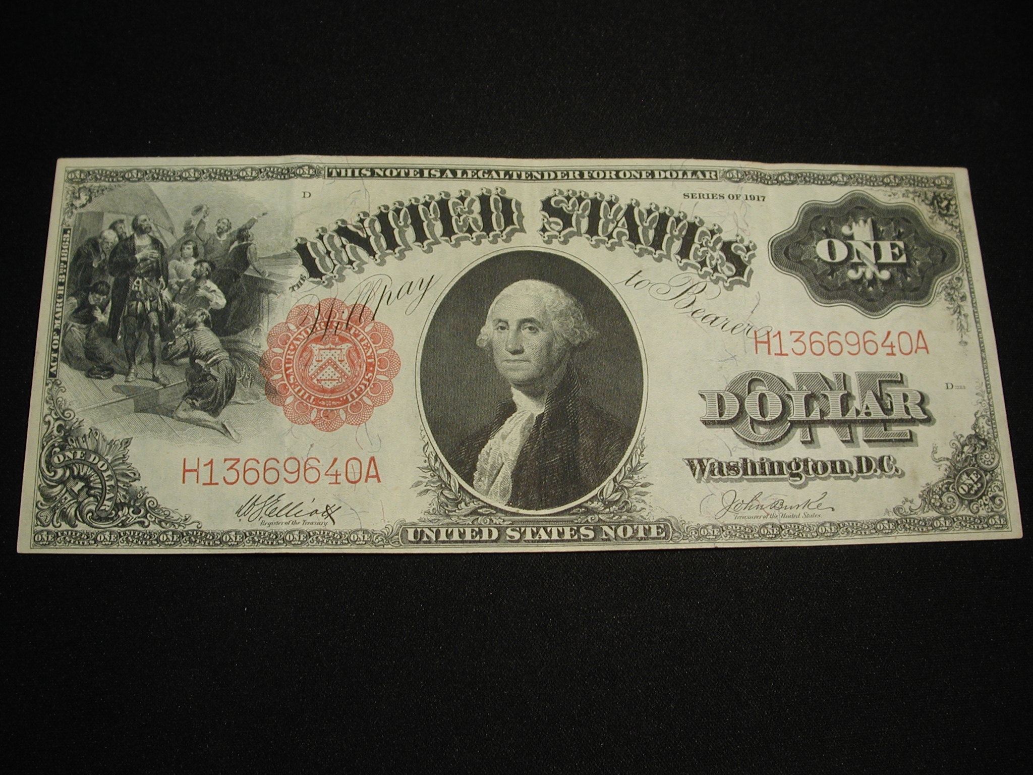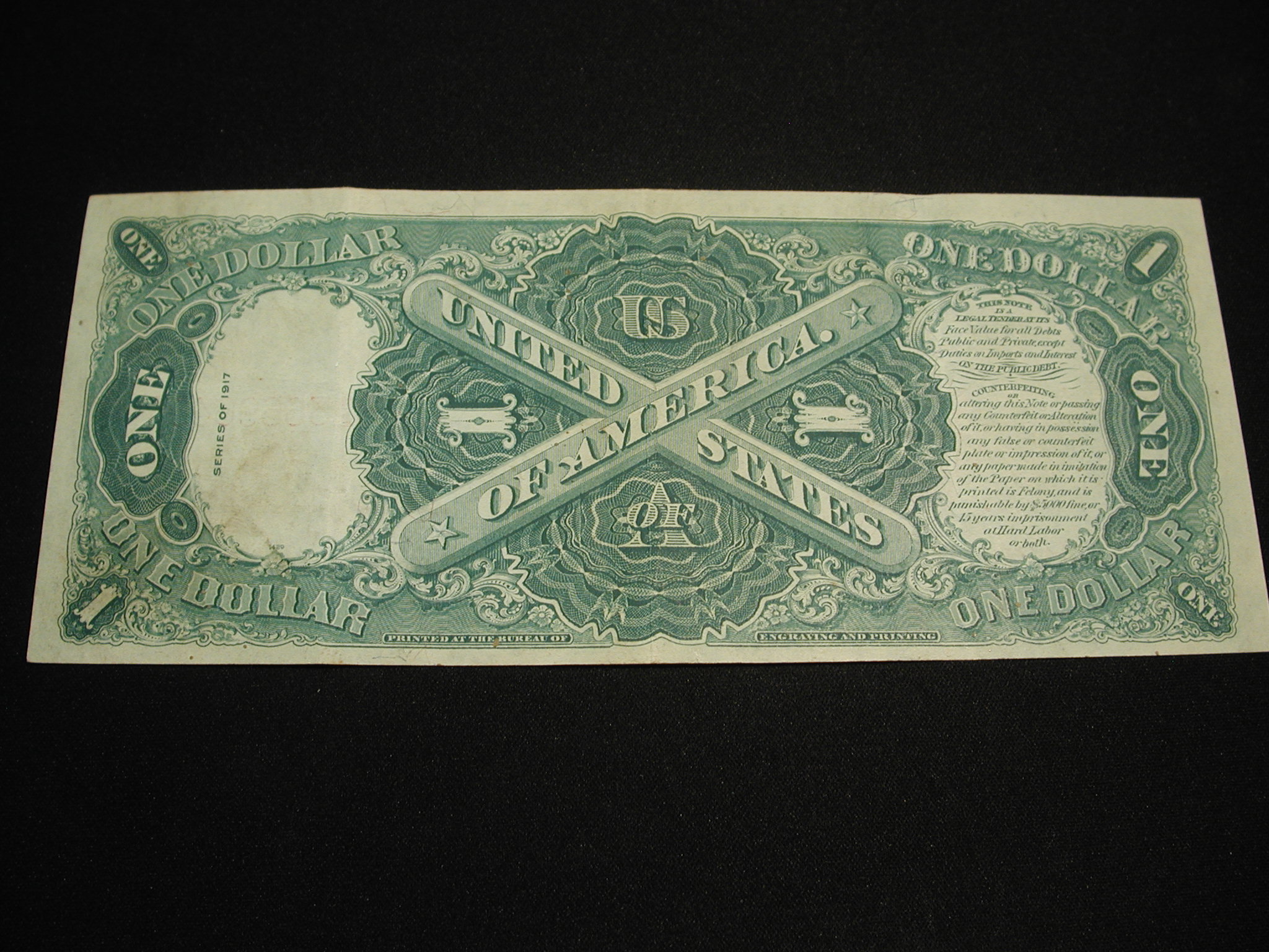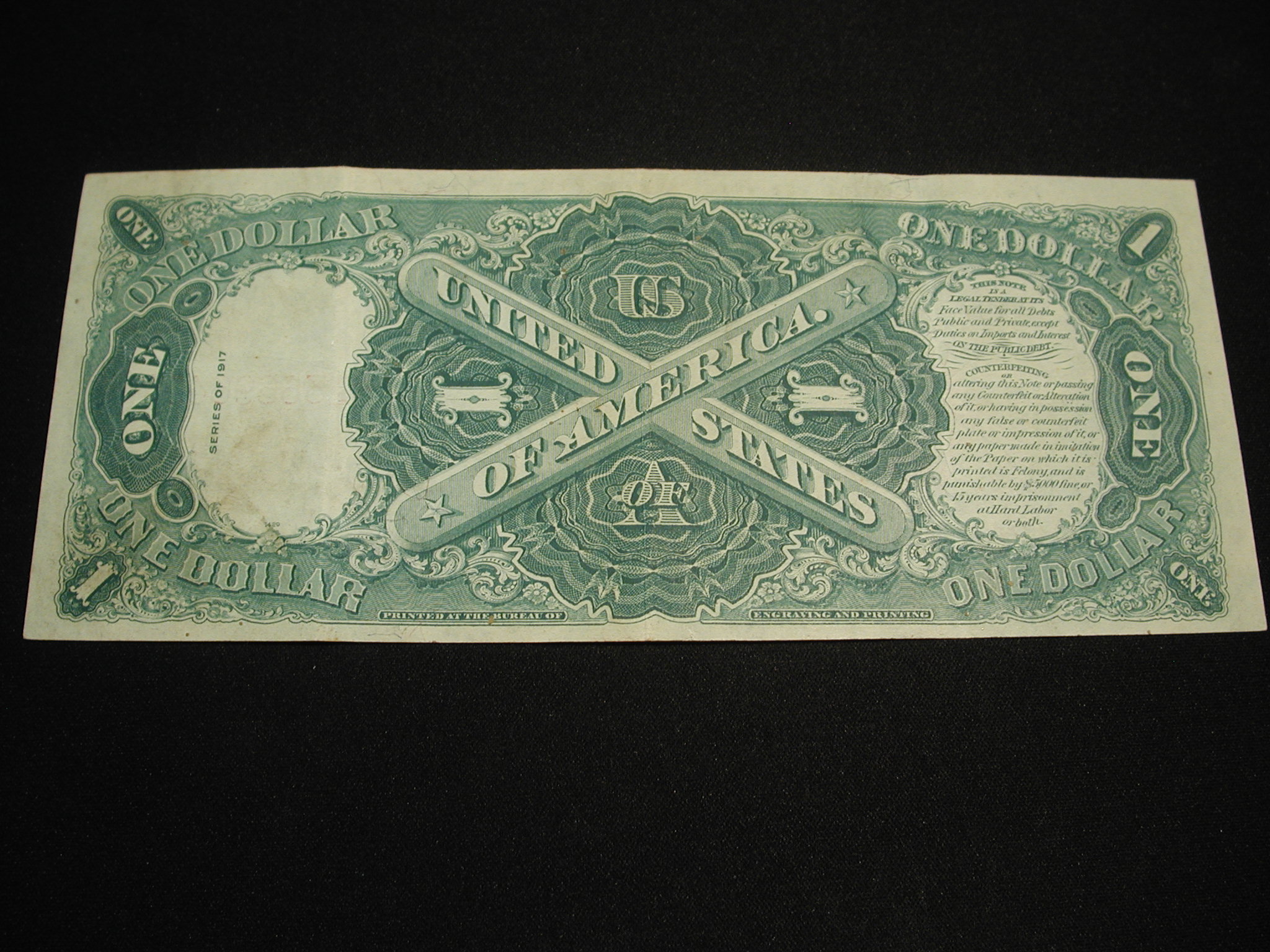 1917 $1 US Note Legal Tender SAWHORSE Fr. 37 Elliott-Burke in what we would consider to be About Uncirculated condition – note as 3 verticle folds – paper is still crisp – very slight staining obverse
