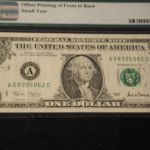 U.S 2001 $1 Federal Reserve Note Boston Fr#1926-A PMG – Error note small tear so note is graded 25 Very Fine Net