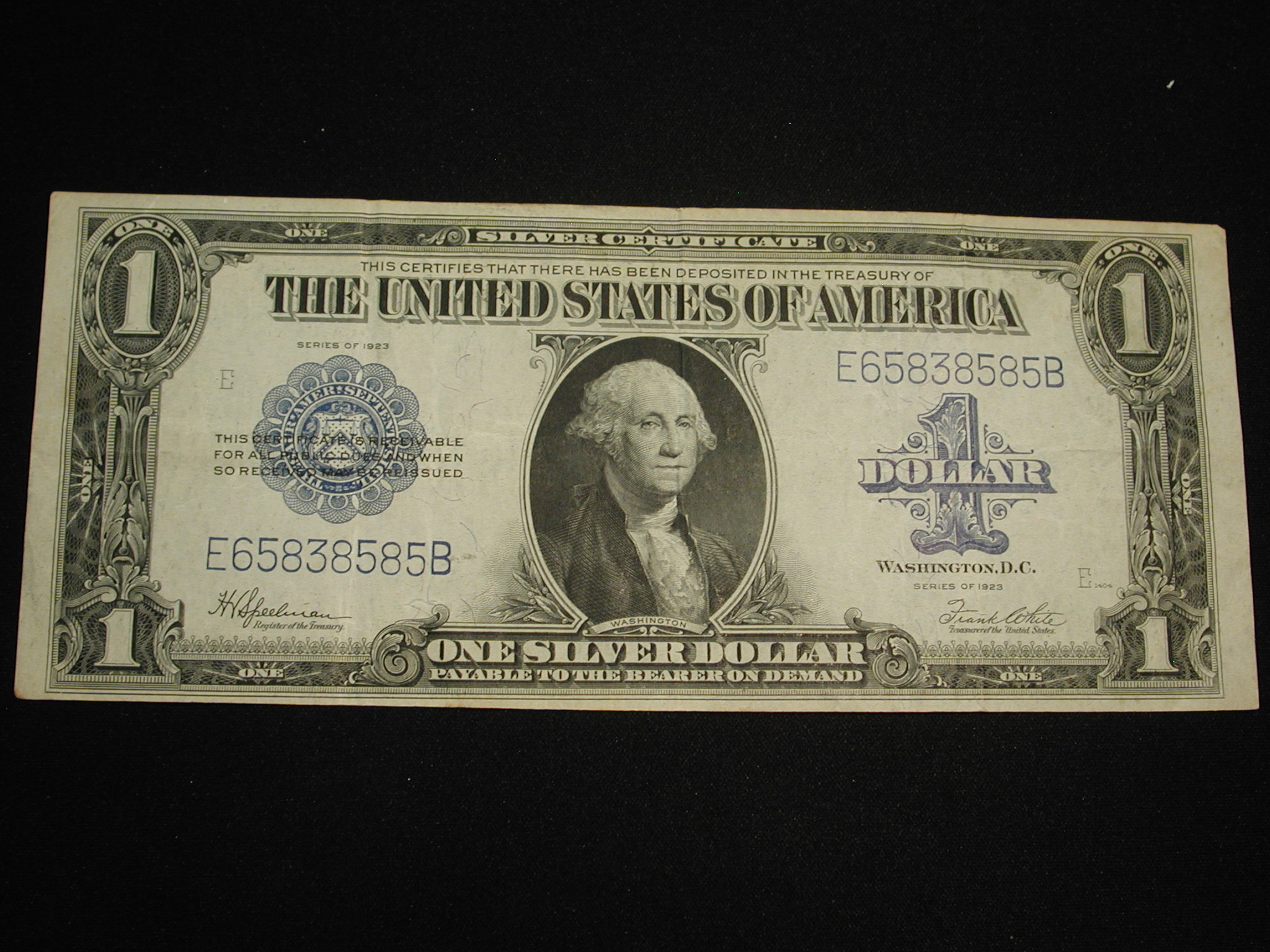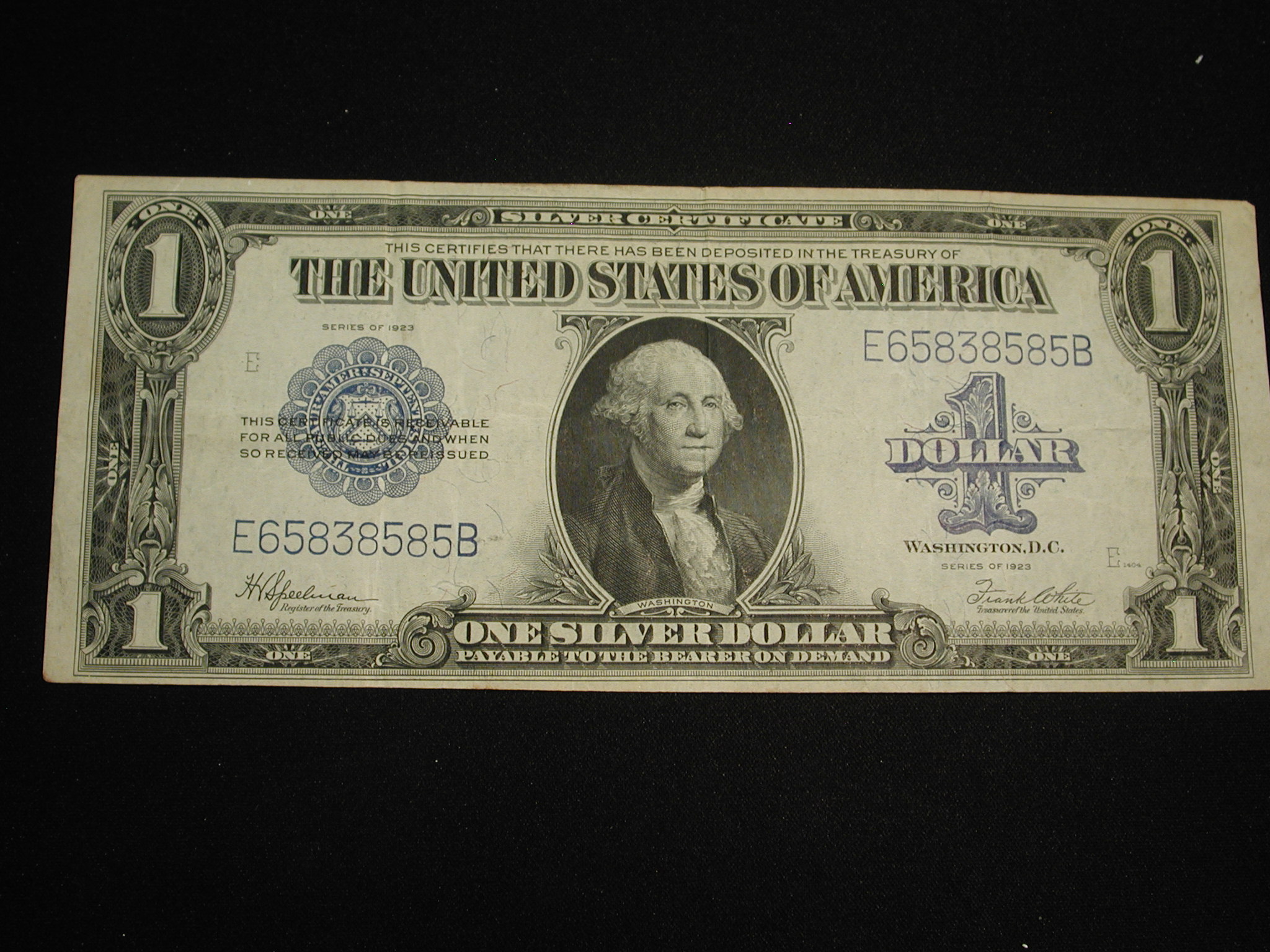 U.S One Dollar Silver Certificate Blue Seal -1923 U.S One Dollar Silver Certificate Blue Seal FR238 VF