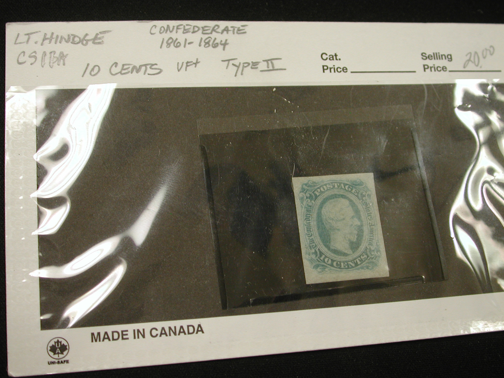1861-184 Confederate Stamp 10 Cent Lt.Hinge Type II VF