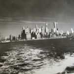 - The study of NEW YORK Harbor and the Skyscrapers of lower NEW YORK is the Nostalgic scene that that welcomes home-coming Americans and Visitors from Europe and south america. At right are Brooklyn Bridge, in foreground, and Manhattan Bridge.