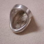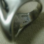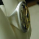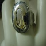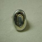 Minas Sterling and 14KT yellow Oval modern Sculptural statement ring weighs 17.5 grams – beautifully made it is a piece of art – slightly indented on both sides gives the ring distinction. Size 6 1/2 however it has large space under the dome so it will also fit a 7 – multiple finger options! Measures 30mm x 27mm