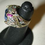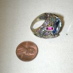 Vintage Heidi Daus Blue Topaz Multi Color Wow RING Size 6 – in pristine condition appears to never been worn! 24mm oval its quite large will definitely make a statement!