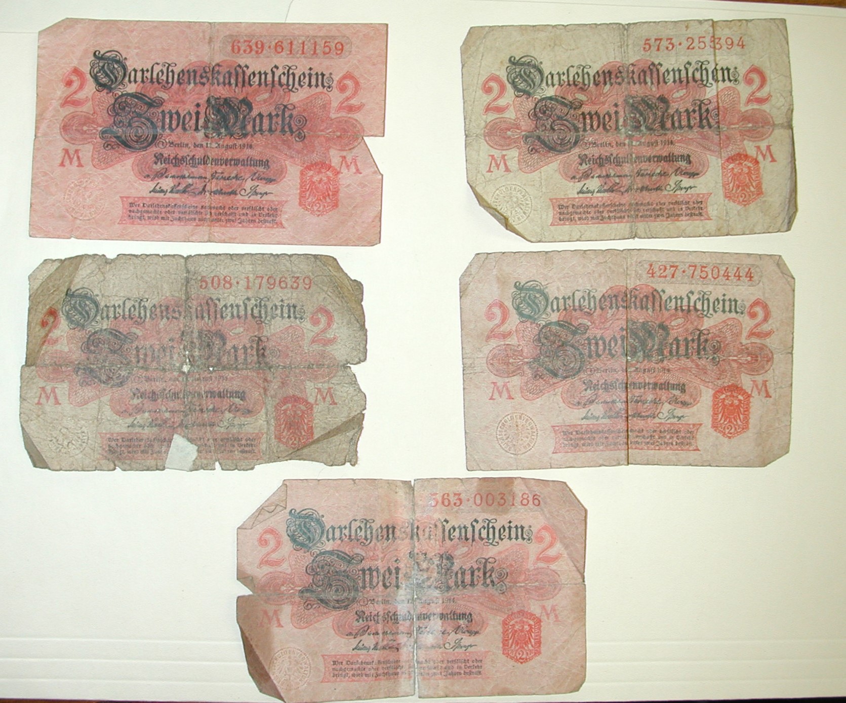 German Empire 1914 2 Mark Circulated Red Seal lot of 5