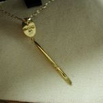 Malcolm Morley 18KT artist brush with diamond pendant. The brush is 2 inches long and has a .10 point round brilliant cut natural diamond burnish set in the top. Solid 18KT yellow gold signed and numbered –  number 2 of the 77 limited edition. Hanging on an 18″ 18KT cable chain.