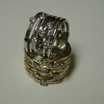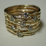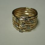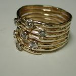 Pietro Infinity Ring – Pietro Infinity Ring made to order 14KT 18KT with your gold or ours – Each is custom made to your specifications – it’s one long hand hammered thick wire made into a multi rung ring – you choose how many coils – usually an odd number works best to a maximum of 7 and a minimum of 3. Add your gemstones or ours assymetrically to add interest and bling! These rings are a great way to repurpose old gold and stones from a relative. Pietro will melt your metal and literally pull the wire with his equipment so you are using your loved ones gold. Or use ours – each ring is priced differently based on materials supplied. We can cast in 14KT or 18KT white, yellow, rose, green gold or any other shade you prefer. Prices for 14KT range from – $1400-1800 and in 18KT – 1800-2400 depending on size. Adding gemstones is additional. Require approx. 4 weeks to craft the item for you.