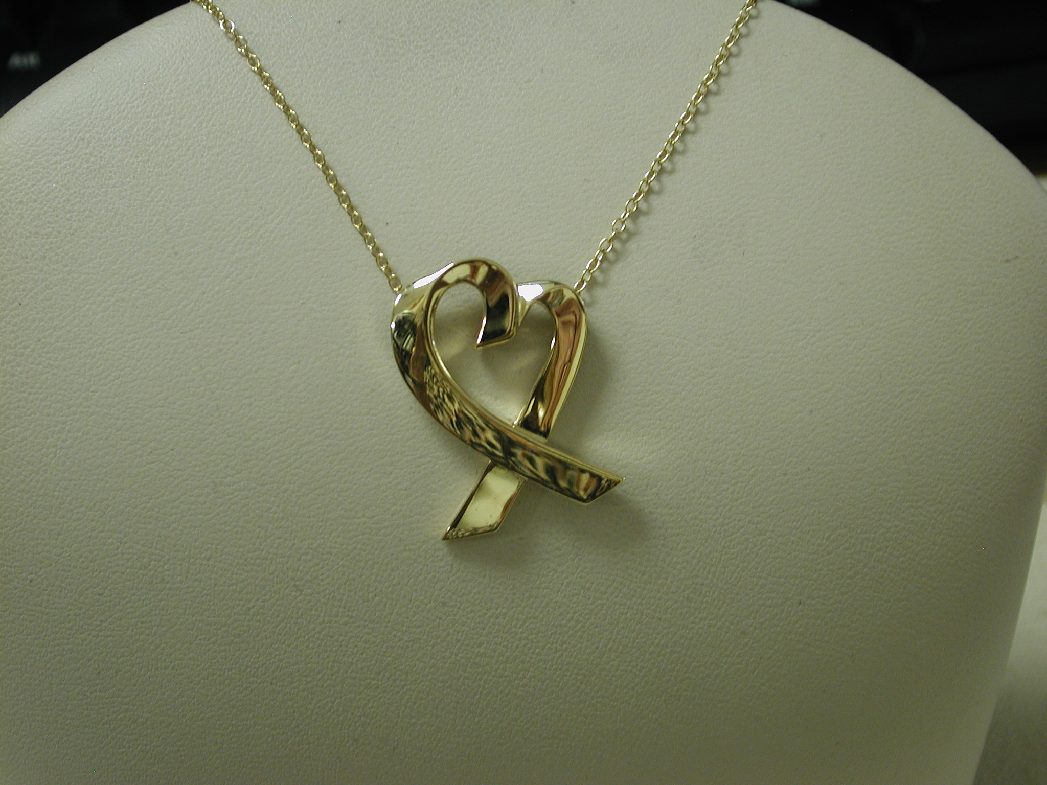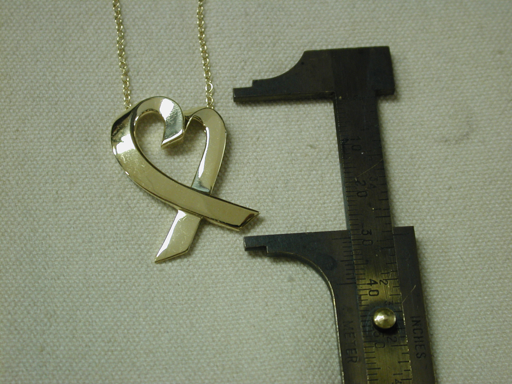 TIFFANY & Co. Paloma Picasso 18K Gold Loving Heart Pendant Necklace LARGE – 33mm(1.3″) long x 23mm(0.9″) wide, LARGE size – no longer made this large. Hallmarked .750 Tiffany & Co. Paloma Picasso. This heart is attached to a 24 inch chain so it also longer than most. Weighs 9.67 grams. No issues – we have cleaned and polished and it is ready to gift or wear. Sorry no box or pouch. This is will go to the Ebay authenticator so slight delay in getting to you.
